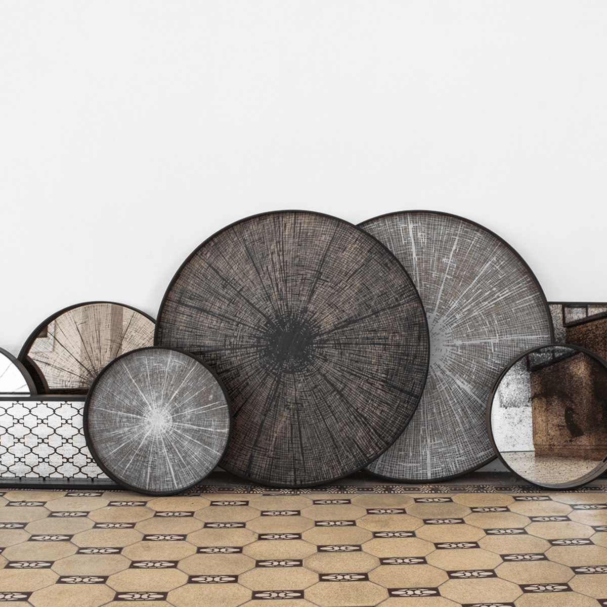A subdued color palette meets captivating motifs inspired by nature and travel. This Black Slice wooden tray experiments with the balance between rich patterns offset with muted tones, revealing the beauty behind the deceivingly ordinary subjects from which inspiration is drawn. In doing so, this collection captures the essence of timelessness.