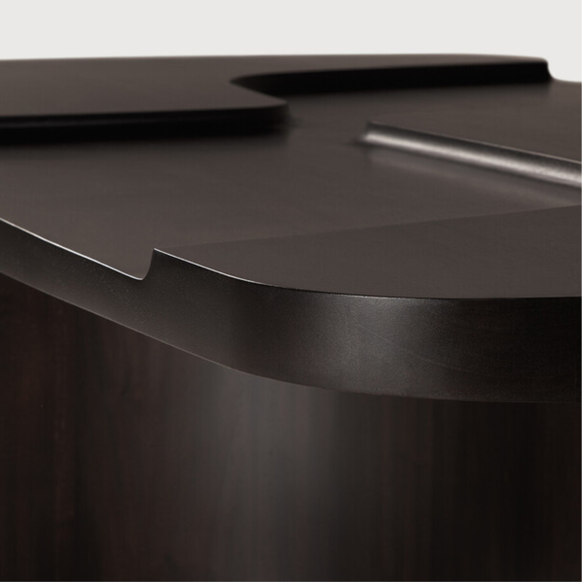 With bold presence and a distinctive form, the Brutalist offers a striking interpretation of functional furniture. Crafted entirely from solid mahogany, each piece is defined by its strong silhouette and carved openings—balancing mass with negative space. A rich stain and varnish finish enhances the natural grain of the wood, adding depth and warmth to its architectural shape. Both statement and surface, the Brutalist collection brings enduring character to any setting.