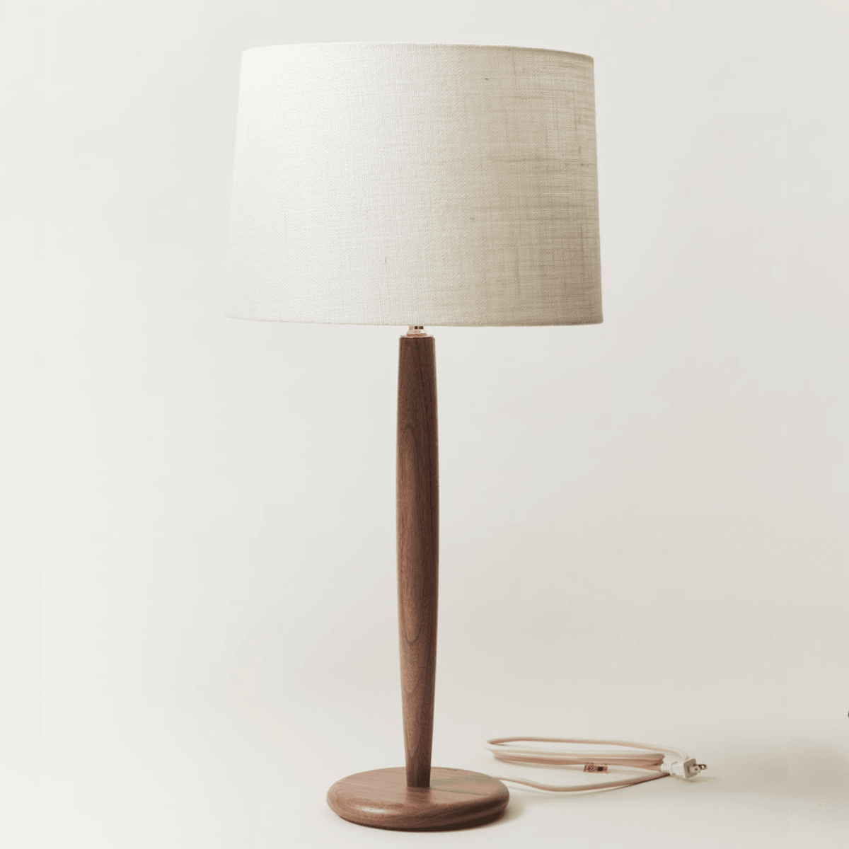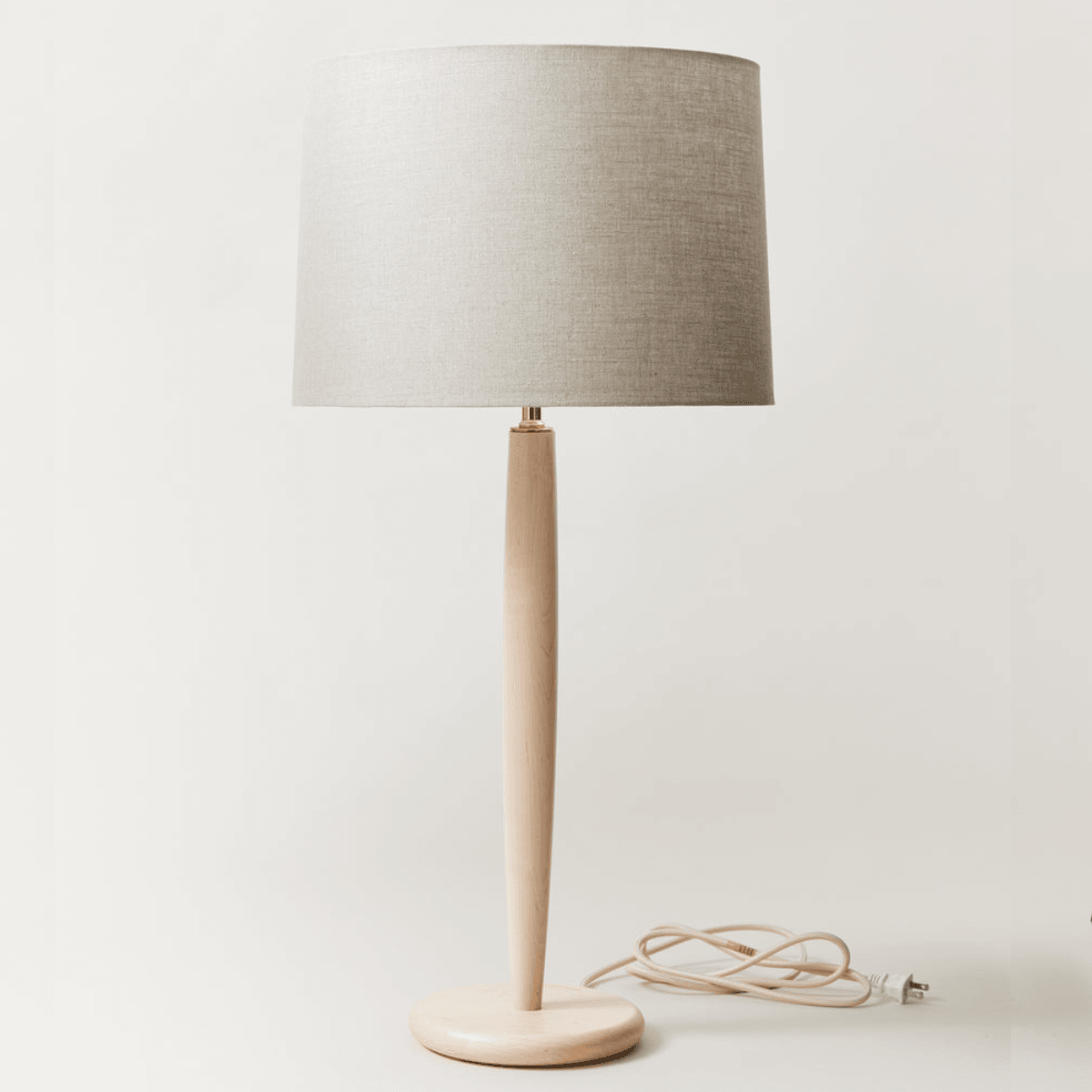 Inspired by the French Rolling Pin, this lathe-turned wooden lamp is not just a lighting fixture; it's a stunning work of art. Whether you place it in your living room, bedroom, study, or office, it will add a sophisticated touch to your surroundings. The Pin Lamp effortlessly enhances the ambiance of any space, elevating it from ordinary to extraordinary.