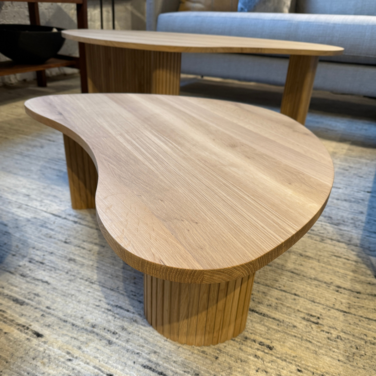 Playful, pebble shapes set on a beautiful, folded, base. The Boomerang coffee table is a fantastic and well-proportioned addition to any space. Configured with the two sizes together, or as a stand-alone, this design is sure to capture attention.