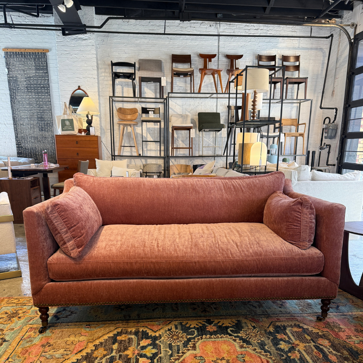 The Madeline, both a designer and customer favorite, is made with a Cloud down cushion. This cushion is one of Rowe's most luxurious and comfortable cushion options. The Cloud down cushion requires daily maintenance - fluffing, flipping and smoothing of the seat and back cushions to keep its appearance looking fresh. Comfort wrinkles are to be expected and are a feature of the sofa's style – a traditional sofa frame with modern, relaxed seating.
