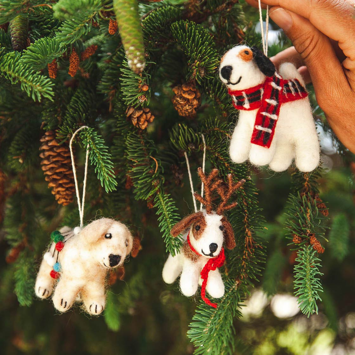 For everything you need to trim the tree and mantle with cheer, explore handcrafted wooden and 100% wool ornaments from Farmhouse Pottery, as well as woodland incense smokers and felted garland. Global Good Partners has you decked out with fair trade wool ornaments in several whimsical designs, and East End Press offers three-dimensional paper stars, vintage baubles, and winter trees to spruce up your boughs and packages. For your favorite modern design lover, a set of Bauhaus-era ornaments is sure to help them celebrate in style.