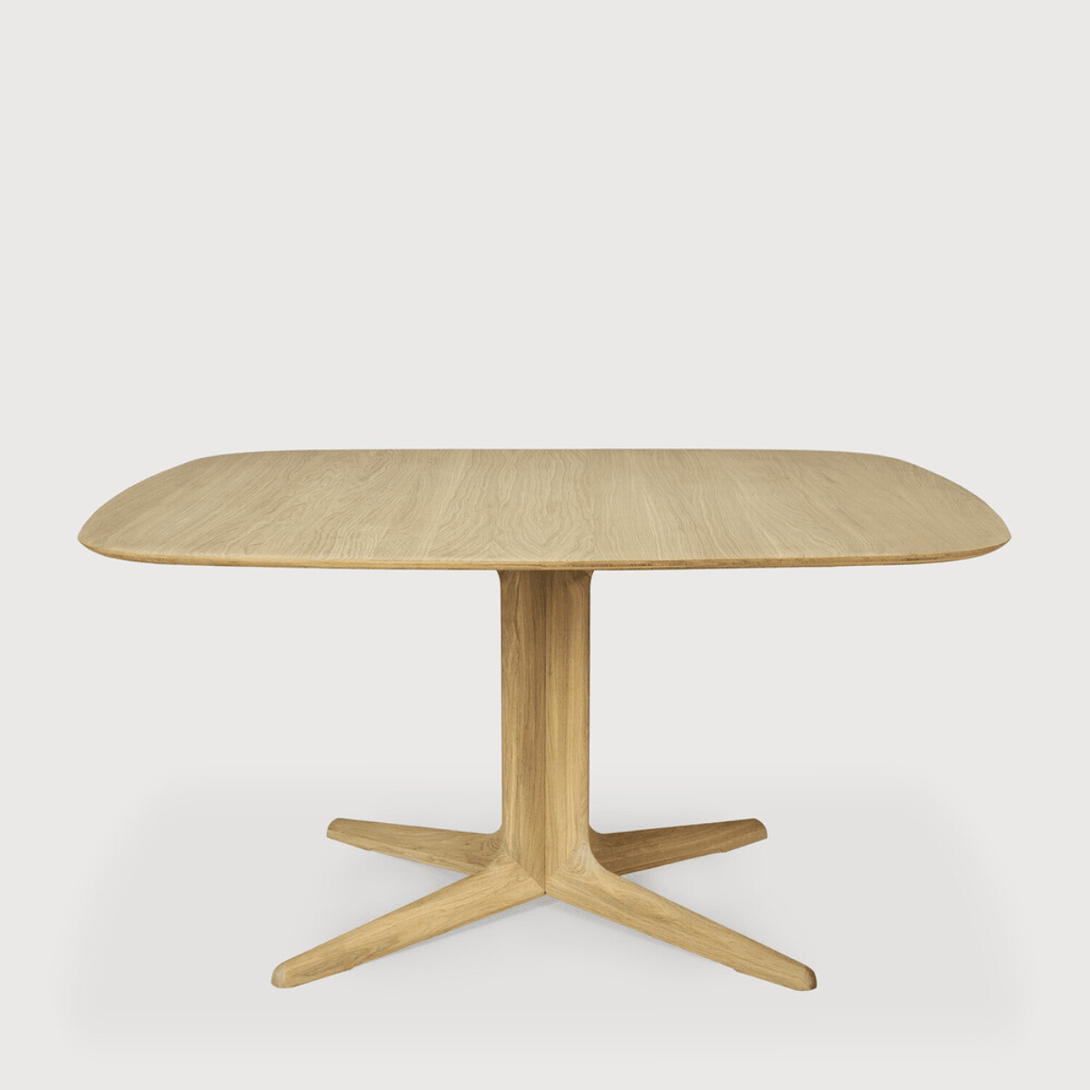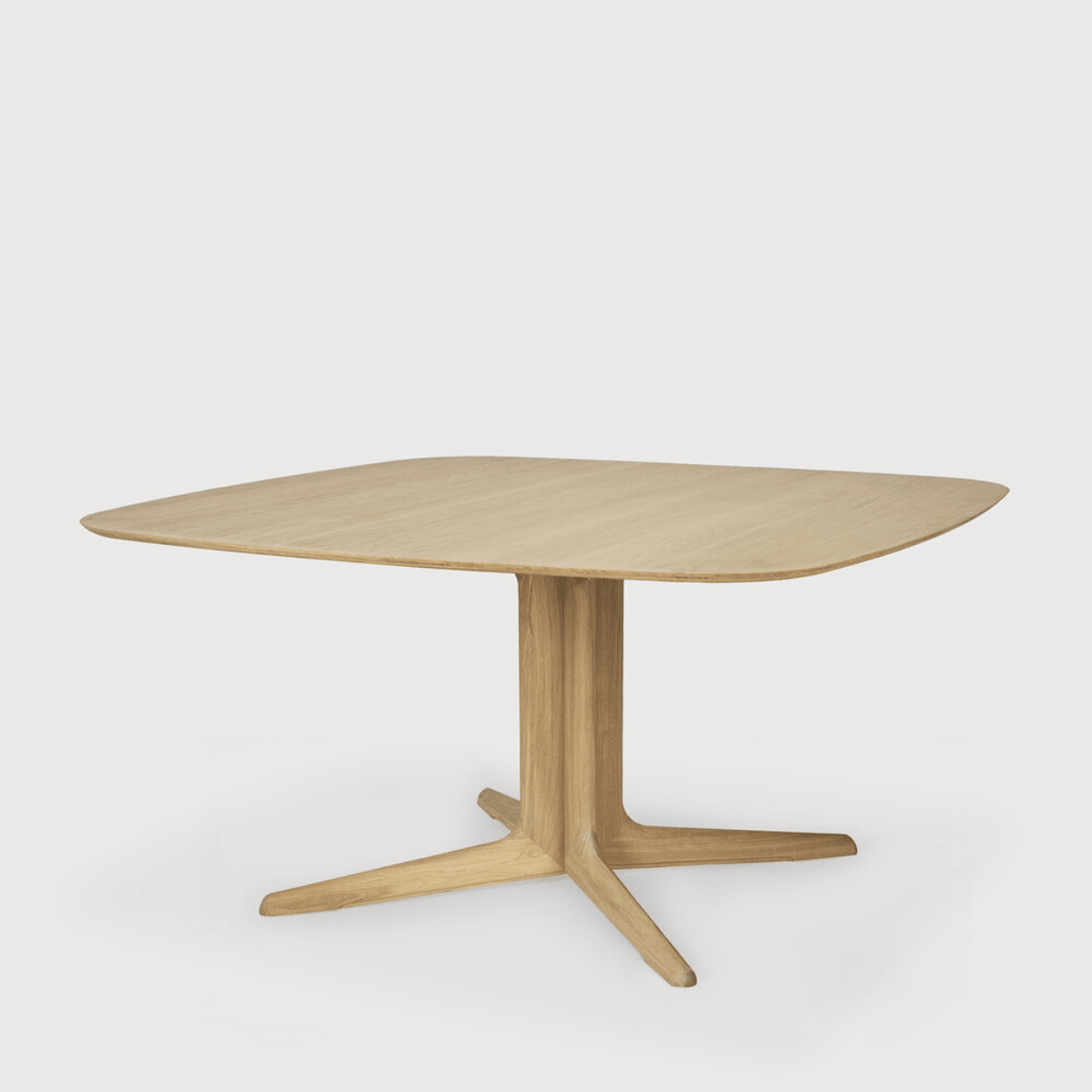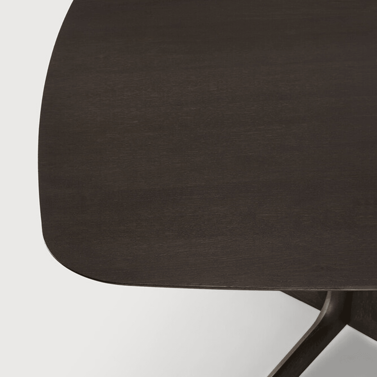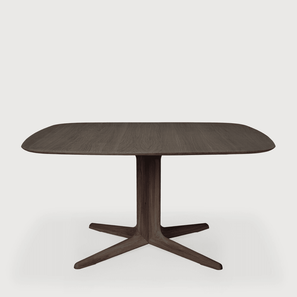 Inspired by the vaults within grand architectural designs, the Corto's central-footed base provides both visual interest and practical stability with less leg disturbance for your guests. The solid oak brown tabletop is crafted into the perfect shape, with unique rounded corners to create welcoming and comfortable social or professional gatherings.