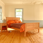 The Harvestmoon Panel Bed is designed with two floating panels within a frame structure for both the head and footboards. Maple Corner Woodworks designs each panel frame to give a landscape appearance with long continuous boards moving from left panel to right panel and giving a sense of an "above and below". Available in Cherry, Maple, or Walnut hardwood.