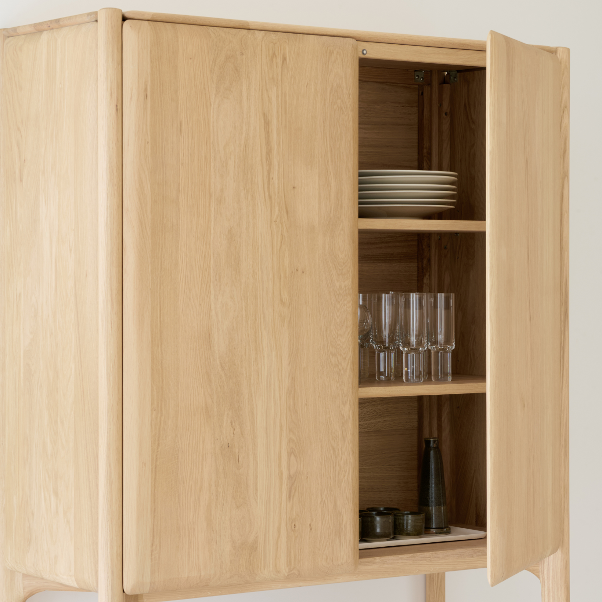 The PI collection honors nature’s design by keeping the strength, curves, and lines, as nature intended. Interesting shapes are discovered in this sleek and stylish, polished, and imperfect finish. Each PI item is finished by hand to ensure that the individual character of the wood is respected. The PI cupboard is striking and unique, with practical storage to complement a variety of spaces.