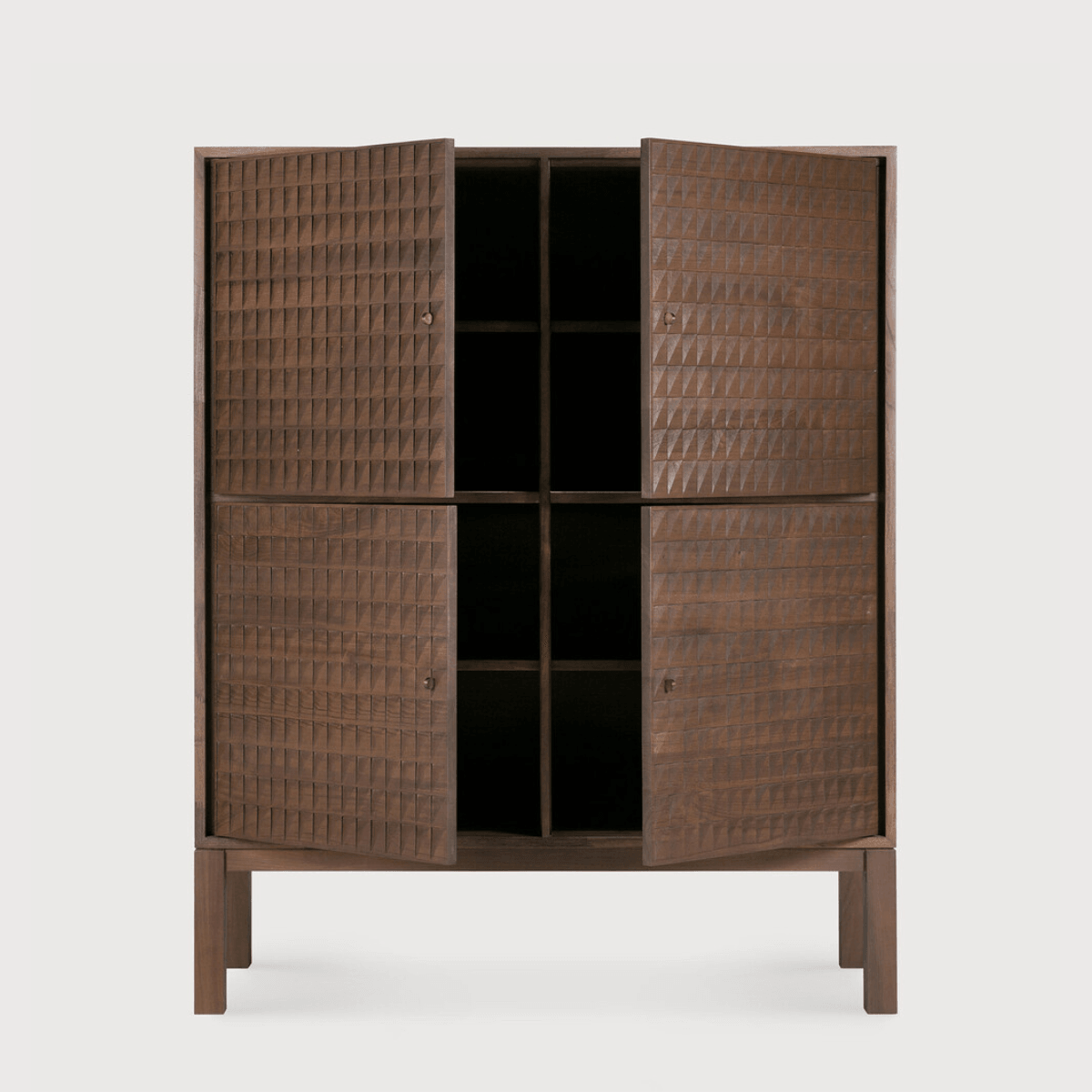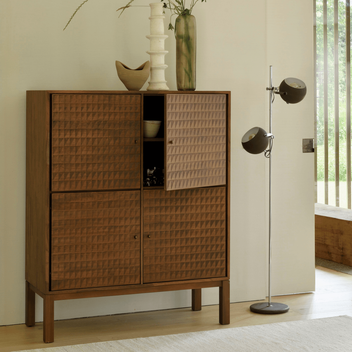 Sono, where antique-inspired craftsmanship meets modern elegance. This refined statement collection features hand-carved panels, offering functional storage behind classic beauty. Delicate casted brass handles elevate its look, making for a stunning addition to a room. It's the perfect blend of style and practicality, providing ample storage while enhancing your décor with its special detailing.