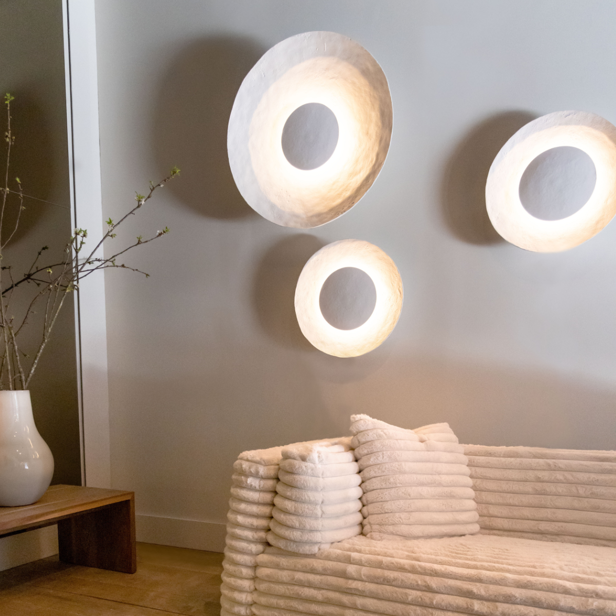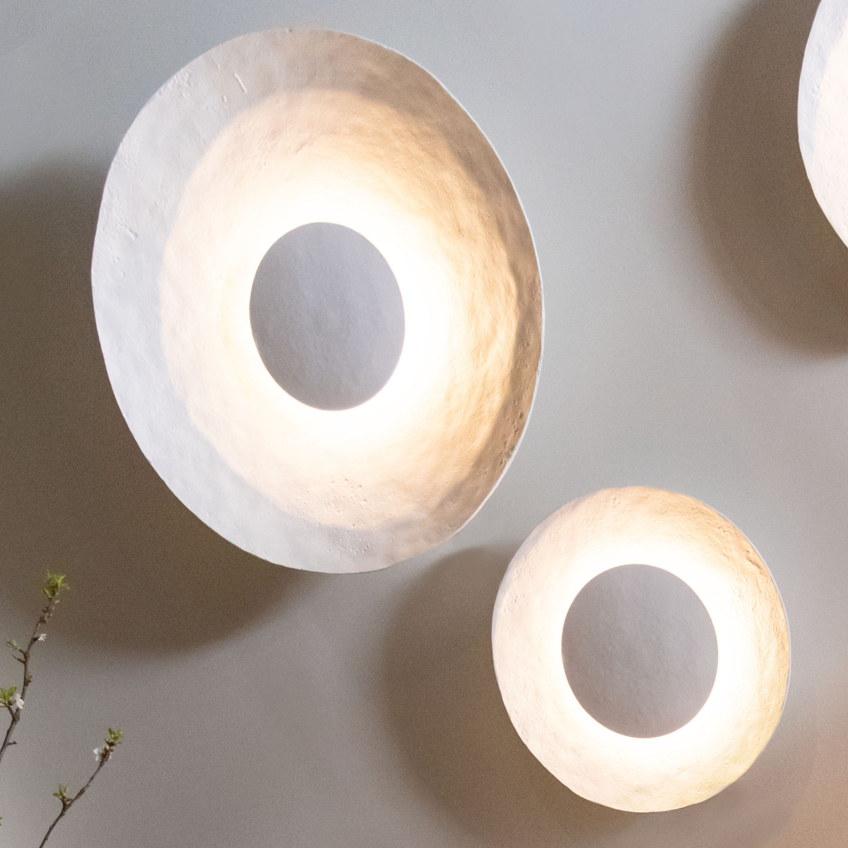 The Eclipse Light is a round resin casted light that comes in white or black which has a surface texture that is rough and crater-like.