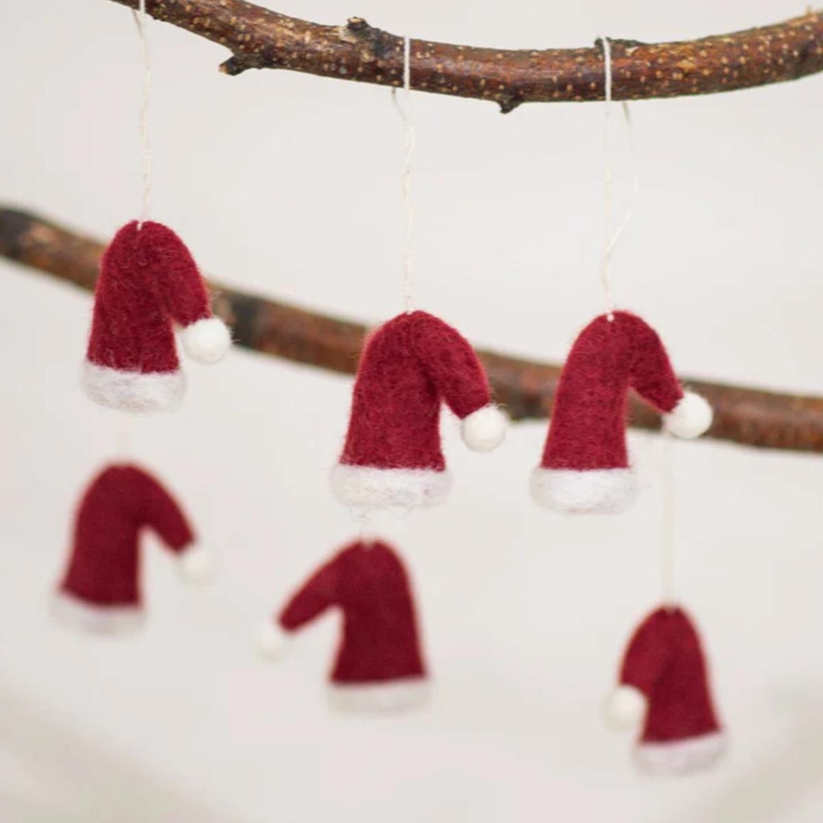 Bring a little Santa magic to your tree! This set of six wool felt Santa’s hats adds a playful pop of holiday cheer to any branch. Each hat is handcrafted to capture the classic red and white look, making them perfect for decorating or even gifting. Hang them together for a fun, festive touch or sprinkle them throughout your tree to spread a little Santa spirit everywhere!