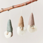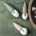 Bring a touch of enchanted forest charm to your holiday decor with our set of three woodland gnome ornaments. Each gnome is handcrafted with delightful details, from their soft beards to their cozy felt hats, creating a whimsical, rustic look perfect for any tree. Whether nestled among branches or adding a festive touch to wrapped gifts, these gnomes bring warmth, charm, and a hint of woodland magic to your holiday celebrations.