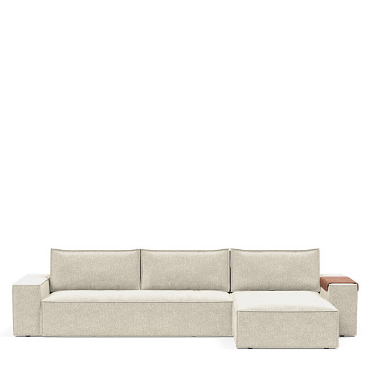 The size of the Newilla with lounger is directly proportional to the value. The wide arm brings out the cozyness of the design, and combining this with the walnut wood tray can turn the armrest into a versatile replacement for a side table. Additionally, the large storage space under the sofa seat as well as under the lounger makes it the perfect place for entertaining or relaxing with family and friends. The sofa bed has a detachable cover which gives the ability to wash the cover to refresh the sofa. You are also able to renew the cover at the end of its life cycle.