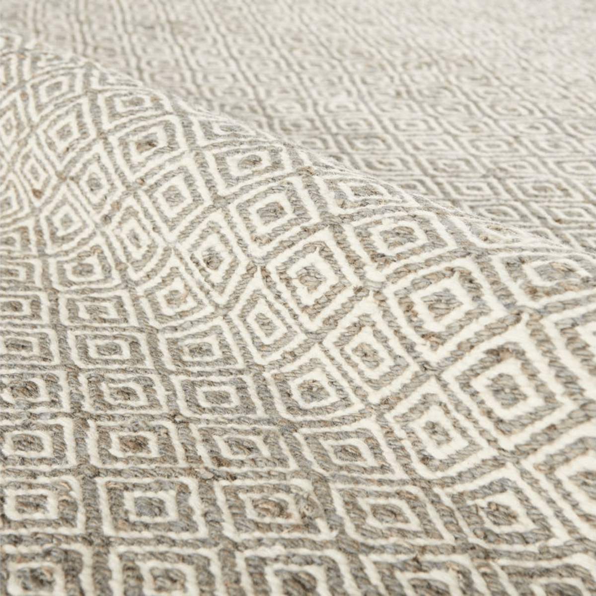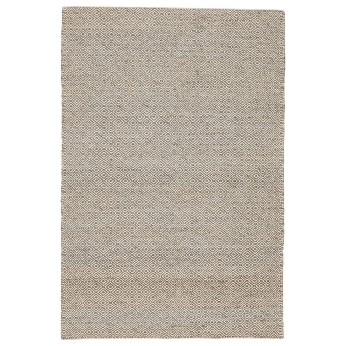 This natural flatweave area rug offers patterned panache and a durable construction to contemporary spaces. A chic diamond design creates a lively look in neutral shades of tan and white, while the wool and hemp fibers provide organic texture.