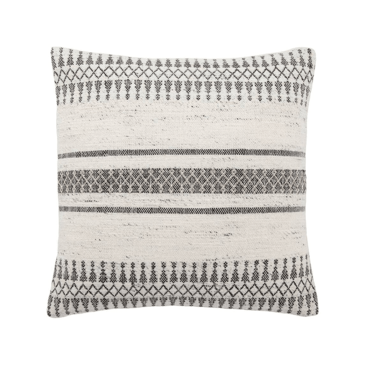 Traditional motifs inspired by European folk patterns lend global style to this stunning throw pillow. Soft in a viscose construction, this square cushion showcases a banded lattice design in gray and ivory with a subtle distressed effect.