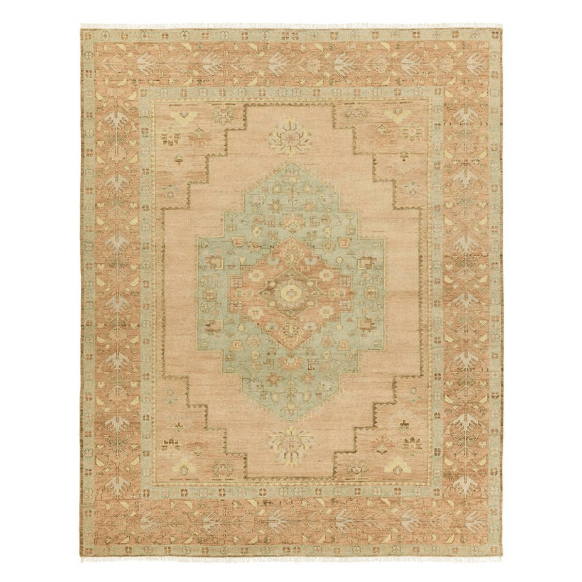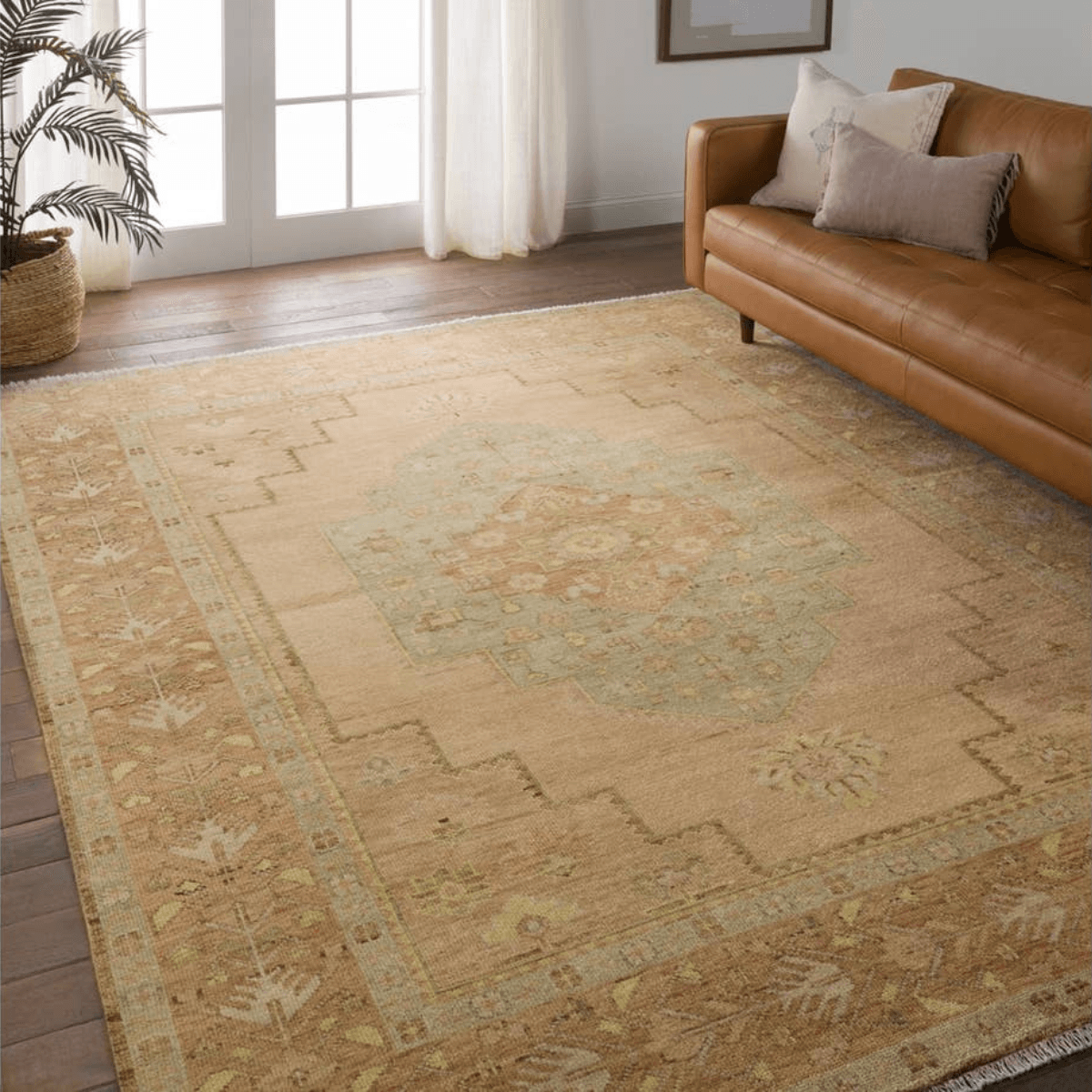 The eye-catching and boldly colored Reza collection features an assortment of Turkish-inspired designs that emulate the unique bazaar finds overseas. These handknotted designs boast a 100% wool construction for heirloom-quality durability. The Hasina rug features a medallion and intricate border in hues of tan, sage, gray, and beige. The low pile creates an easy-to-clean accent piece that thrives in both high and low traffic areas of the home.