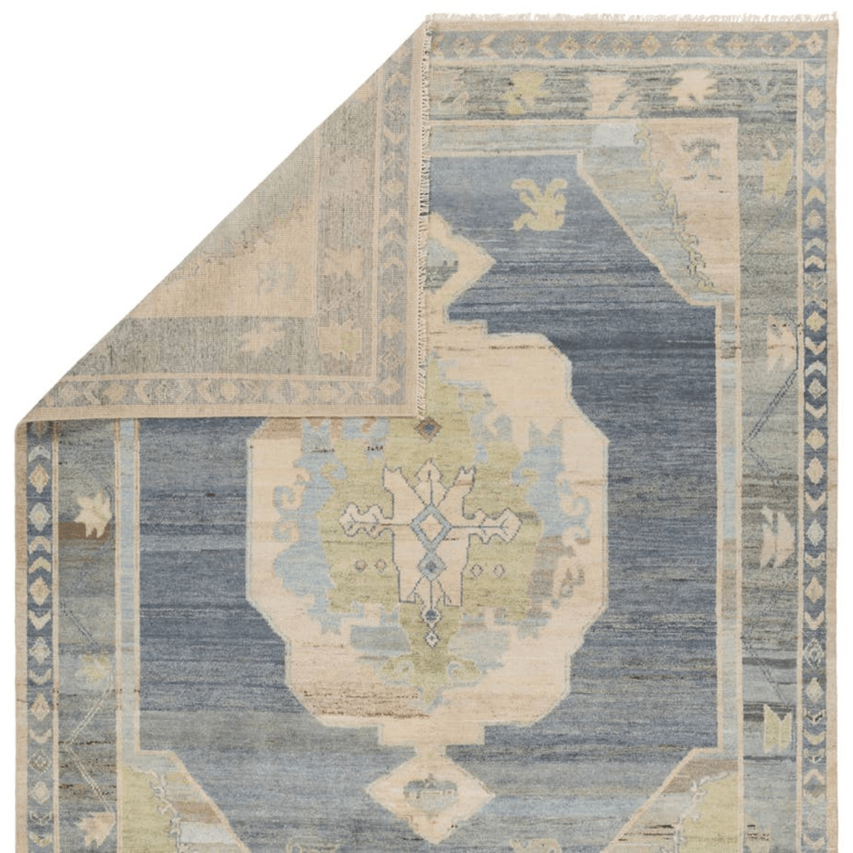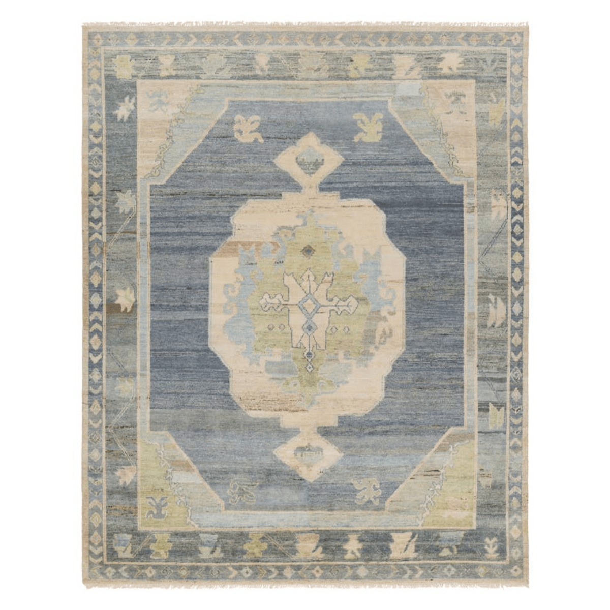 The Reza collection is powerful and full of life. Inspired by exotic Oushak designs, it’s rich with color and design bravado. Soft and strong, dense, and lush with an impressive knot count per-square-inch. The Kieran design portrays hushed blues, greens, grays, and creams reminiscent of a desert oasis. Its meandering double boarder is sumptuous with stylized floral designs and its iconic center medallion, proudly remaining true to its historic Turkish origins.