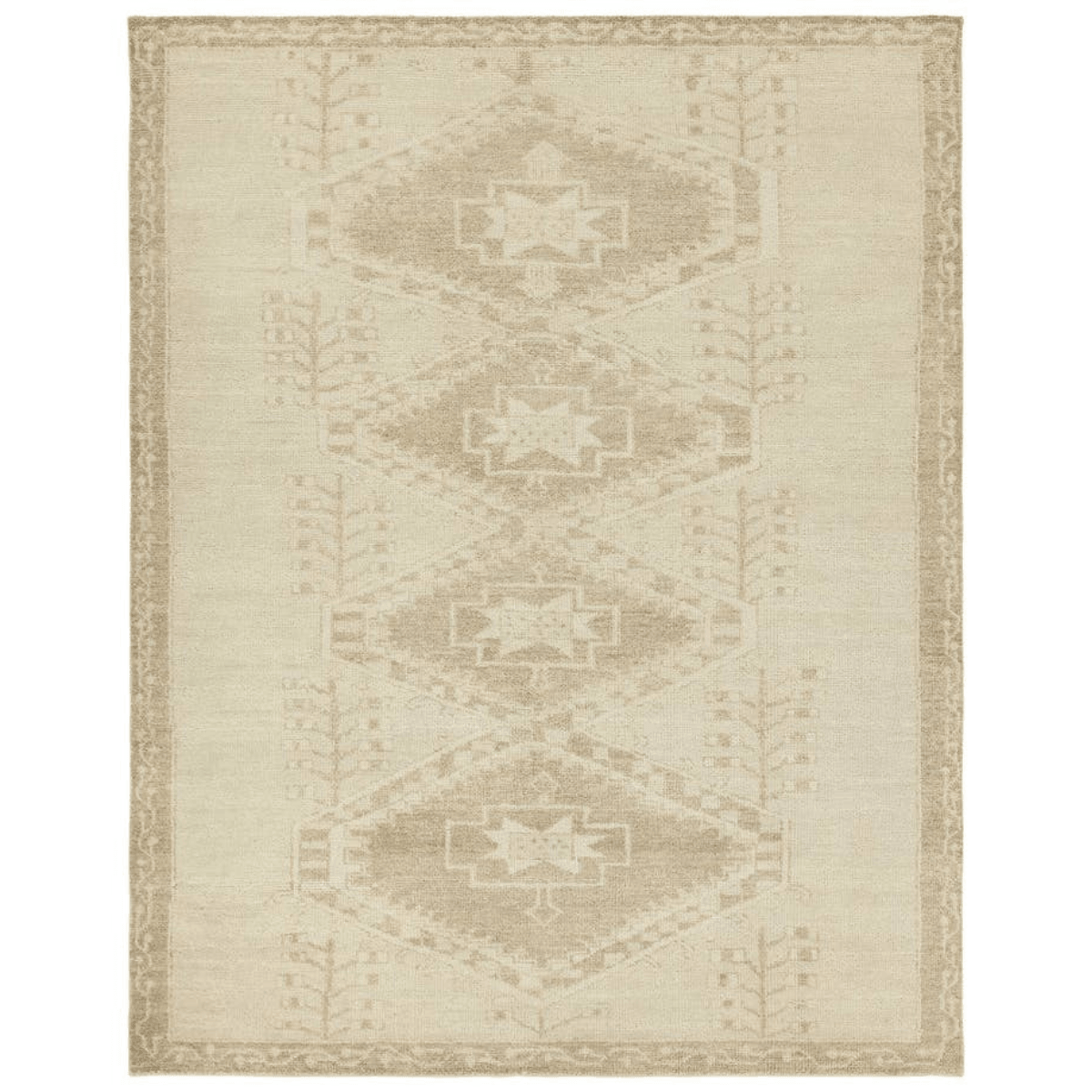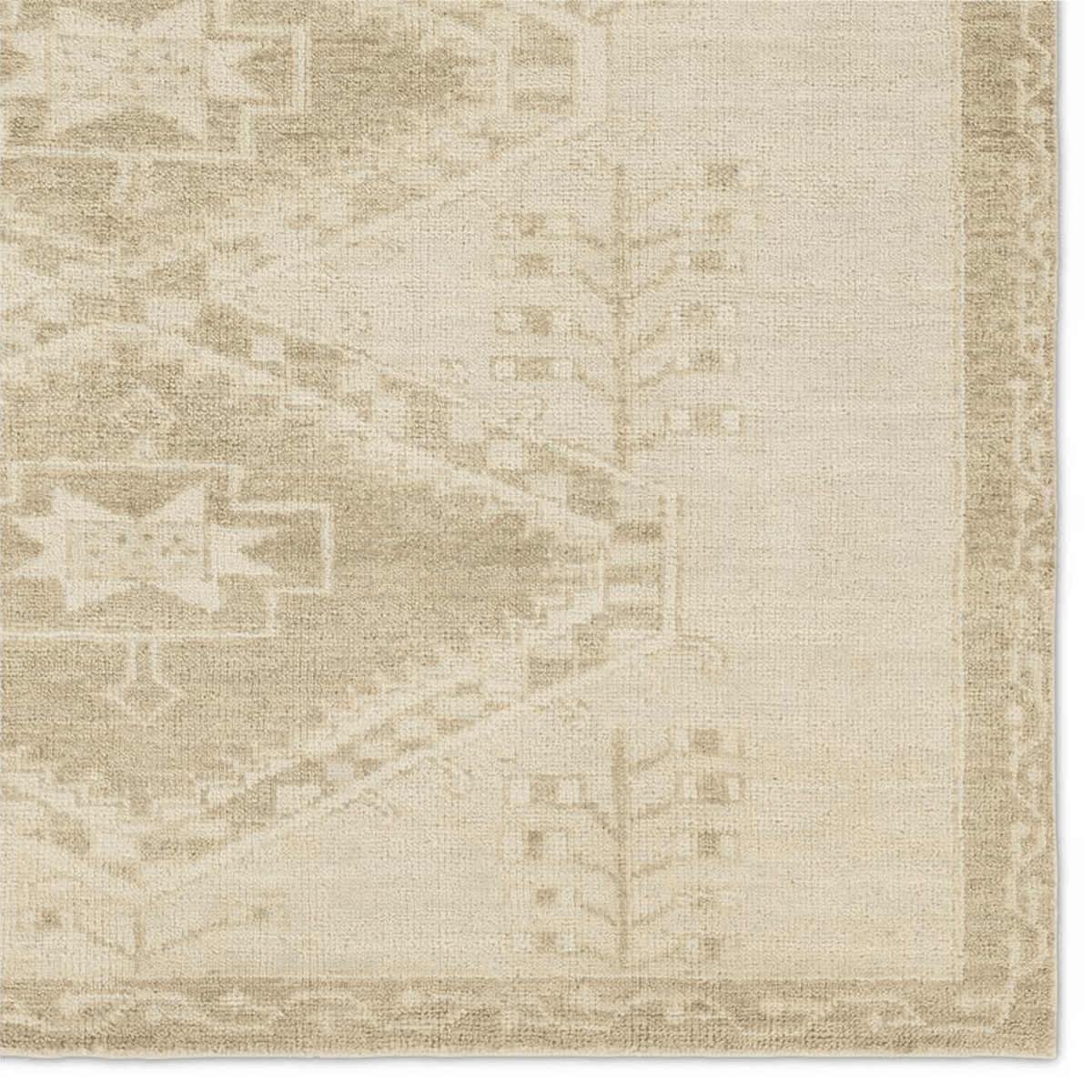 The hand-knotted Jinsen collection features a fresh incarnation of the vintage Turkish textile look. Classic in pattern and modern in color, the Ameen rug boasts a dusty desert and gray color palette and distinct dye-lot details. This artisan-crafted, medallion rug is made of hand-carded wool and has a low, durable pile for the perfect grounding accent in any room.