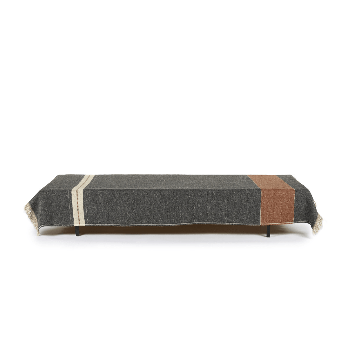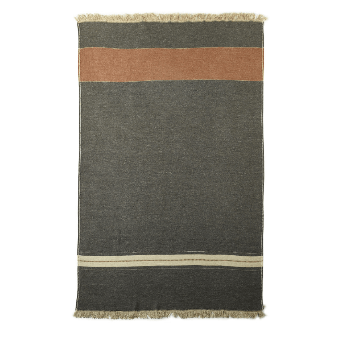 A warm gray ground finished with bone and copper stripes at each end.