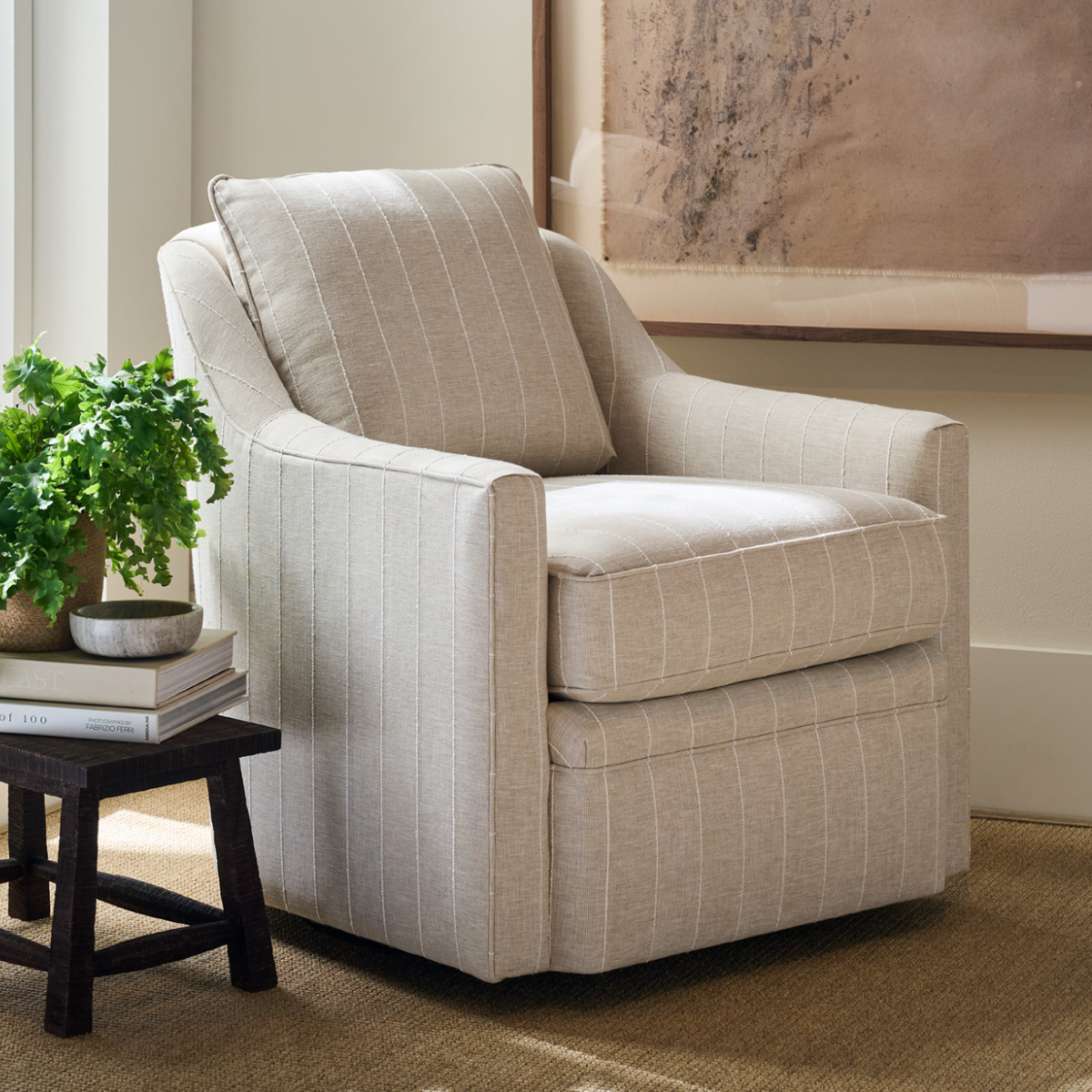 Expand the style potential of your living spaces with accent chairs that are expertly crafted and built to last. This collection includes your choice of traditional leather club chairs, recliners to let you kick your feet up, swivel and glider options for extra movement, and modern lounge and armchairs. No matter what size room you’re designing for, an extra large or mini accent chair can maximize seating capabilities, or round out an intriguing sitting area when paired with a sofa or a coffee table. Available in a wide range of styles, colors, and upholstery, including organic cottons, linens, leathers, and Crypton performance fabrics, these accent chairs make comfort, form, and expert craftsmanship a top priority.