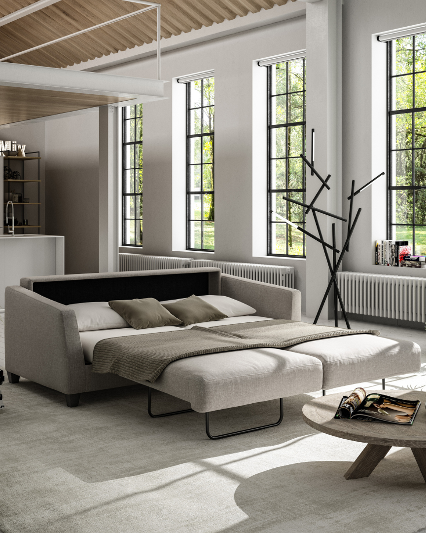 Style and versatility come together with the Ethos. Between its style and easy-to-use sleeper function, it is a top-choice. Enjoy the unique ability of our Nest Function to sit or sleep simultaneously, choose the right size for any room, from King size to Cot size.