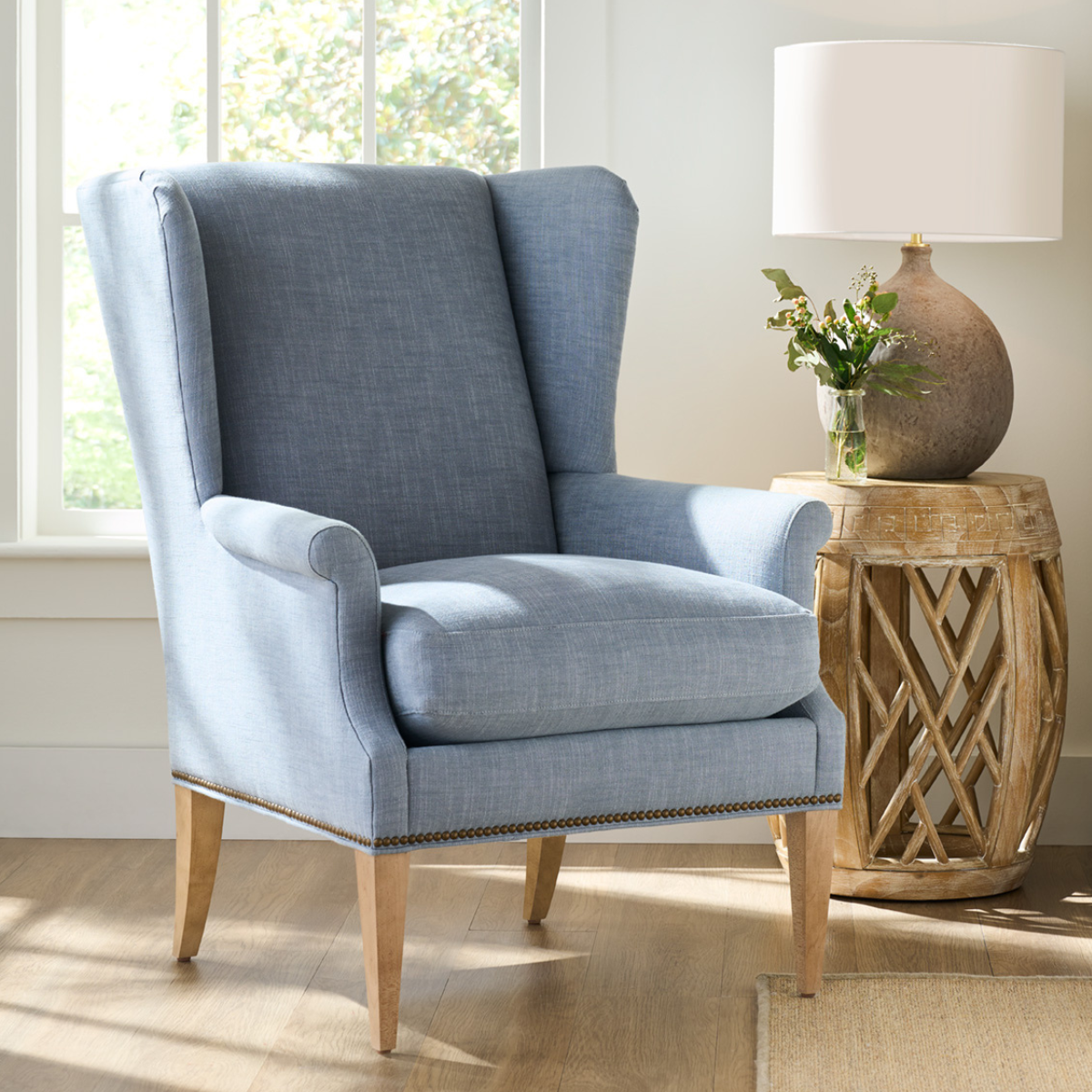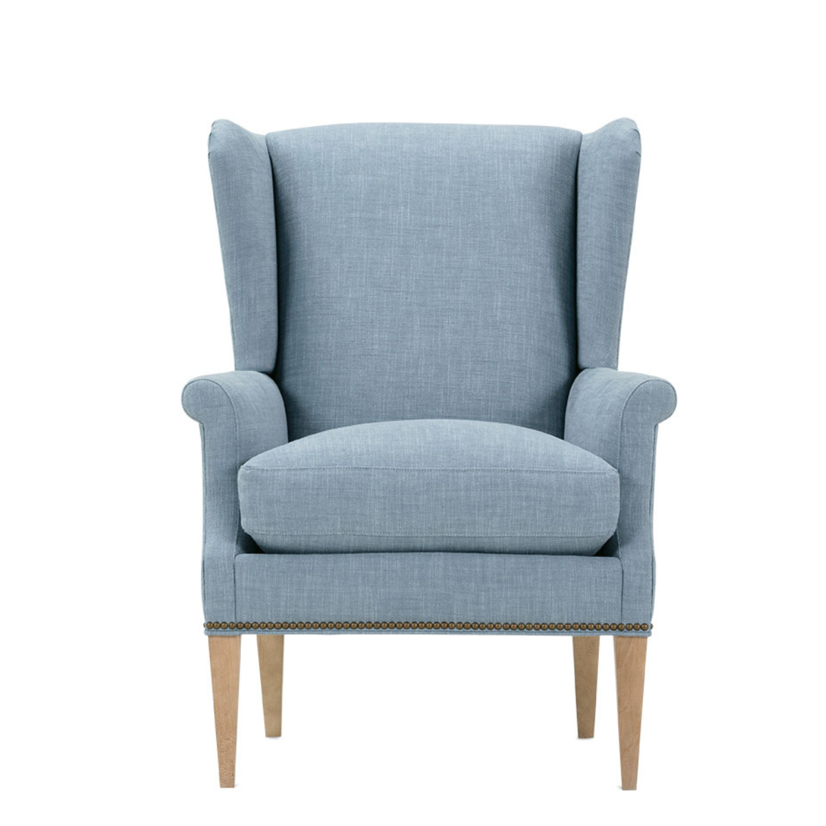 Introducing the Heywood Chair - the perfect blend of classic and modern design. With its tall, wingback silhouette and wooden legs, this chair adds a touch of elegance to any room. The loose seat cushion provides ultimate comfort. Upgrade your seating with the Heywood Chair.