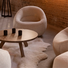 The soft and circular chair features tucks and boldness on a swivel. Micah is an accent piece that makes a statement for comfort.