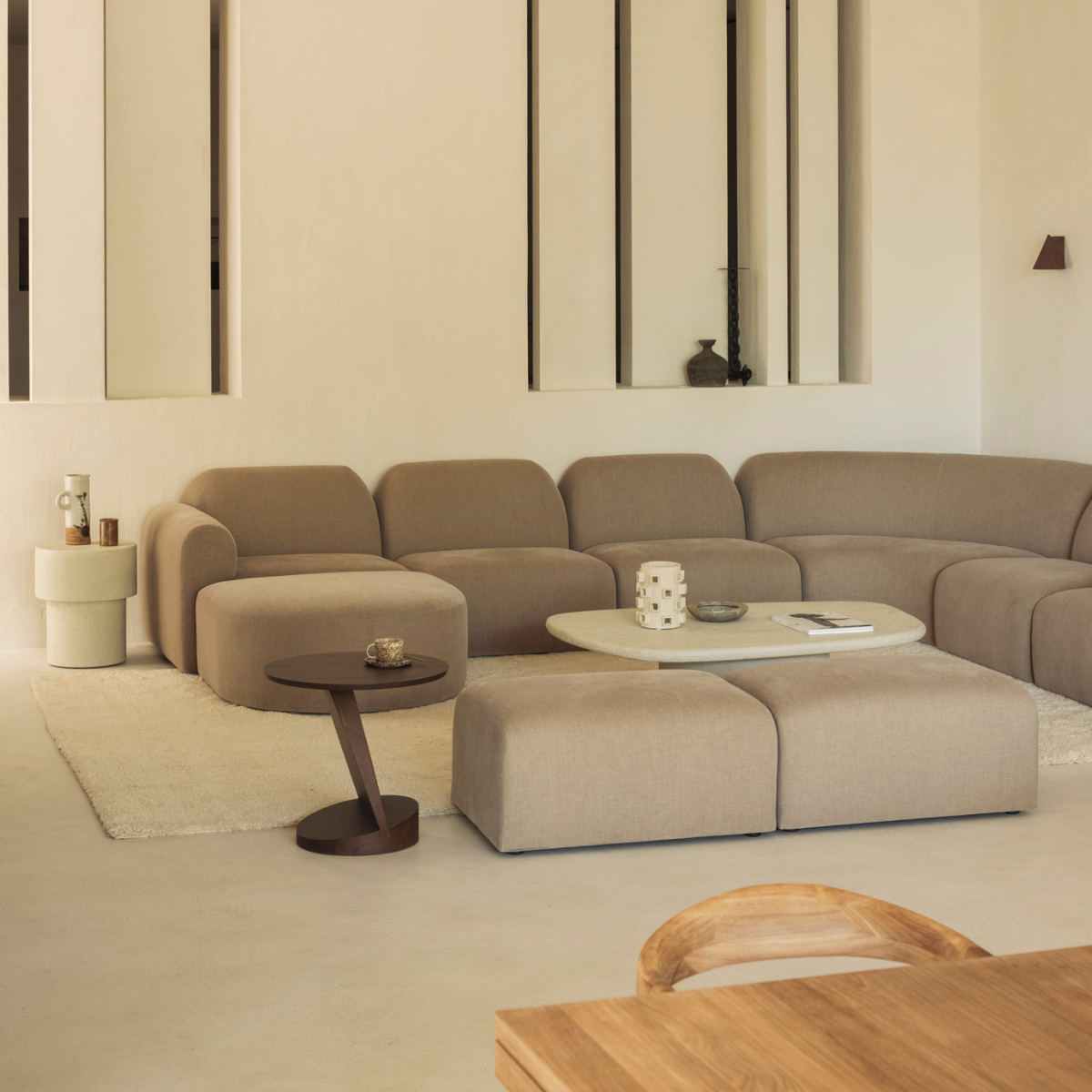 The Bulky celebrates simplicity and versatility in one cohesive form. Its mono-volume design, softened by rounded corners and accentuated with subtle stitching details, lends understated elegance to any space. The clean silhouette pairs with luxurious upholstery and thoughtful contours to provide lasting comfort. Whether for a compact area or a spacious living room, the Bulky’s modular components can be arranged creatively to suit your needs. Choose from pre-configured options or tailor your setup to create a sofa as unique as your space. Clips to seamlessly connect the sofa modules together included.