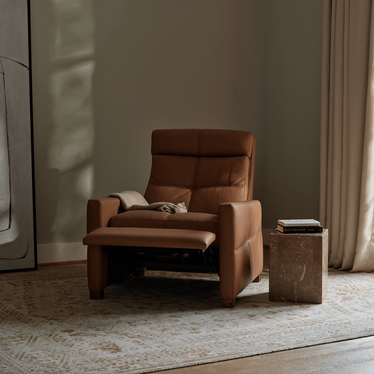 Inspired by the ever popular Comfort Air Echo, the Luxe Series brings the same fully customizable comfort everyone loves about American Leather's Comfort Air Recliner to an array of seating options. Available as a sofa, love seat, or recliner, the Luxe Series is sleek, modern, and features a manual or power articulating headrest and reclining seat option, allowing you to create a unique and unparalleled seating experience for everyone in the family.
