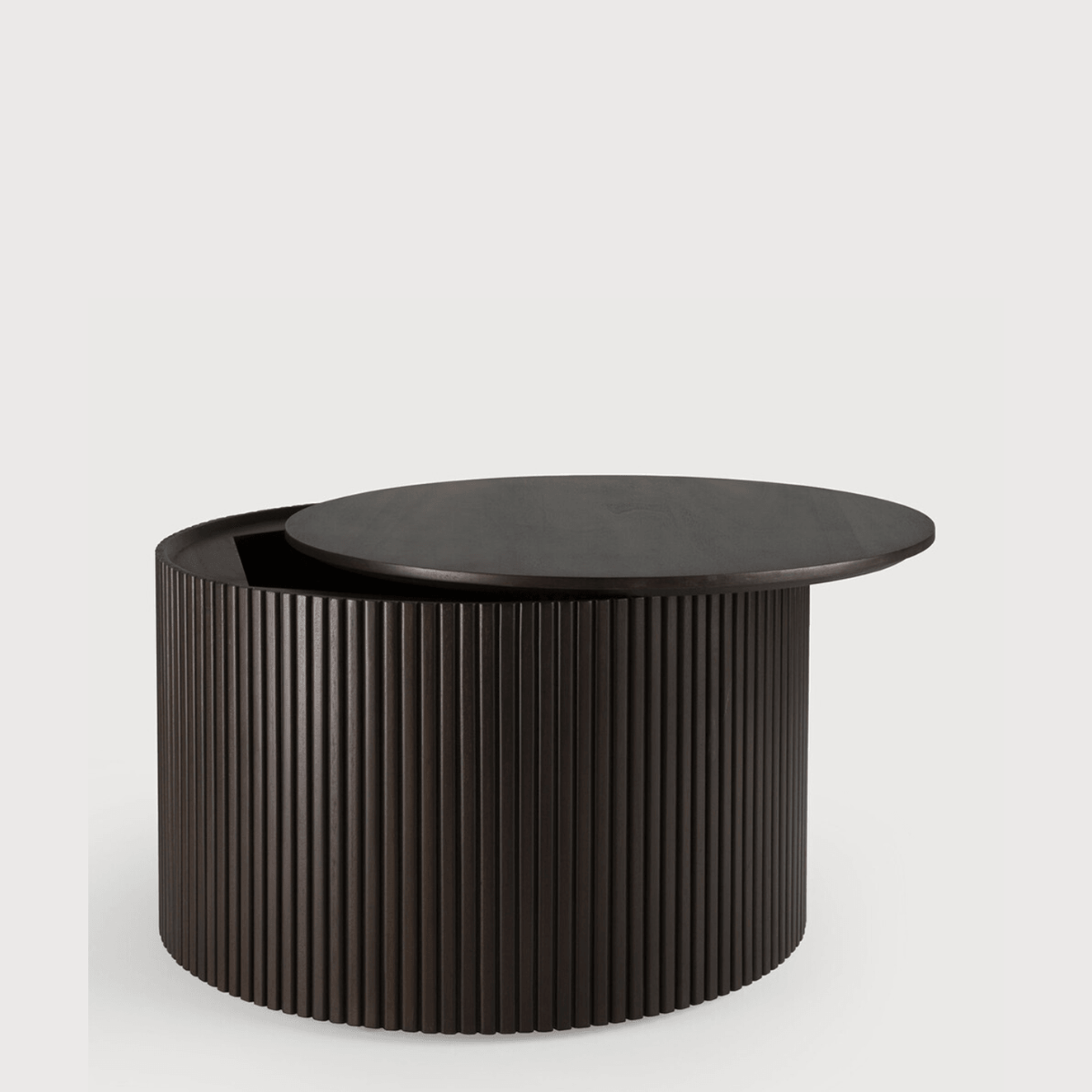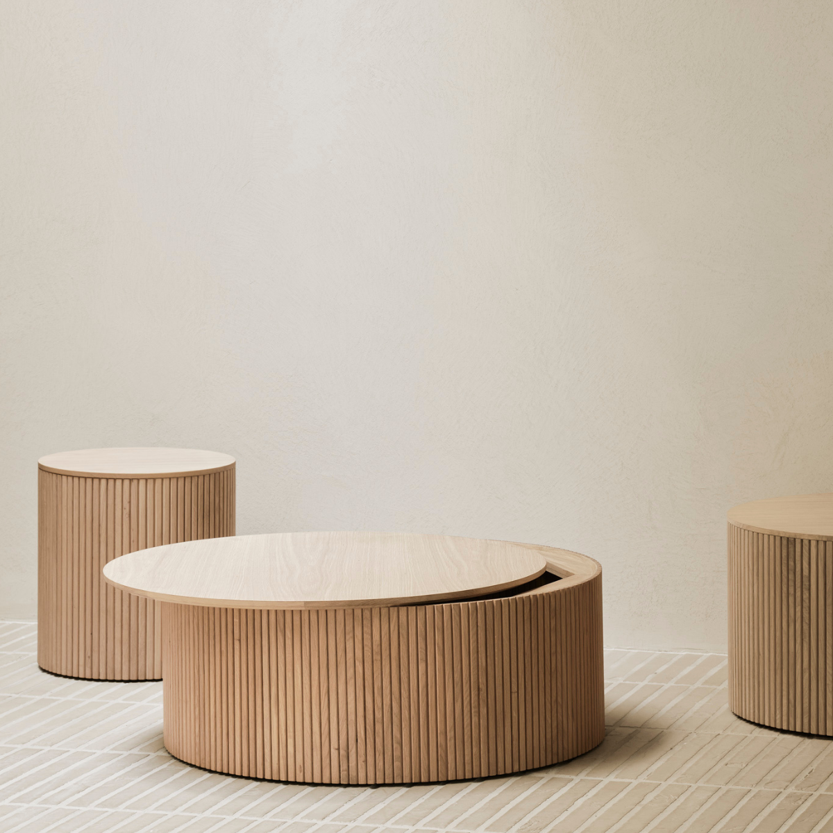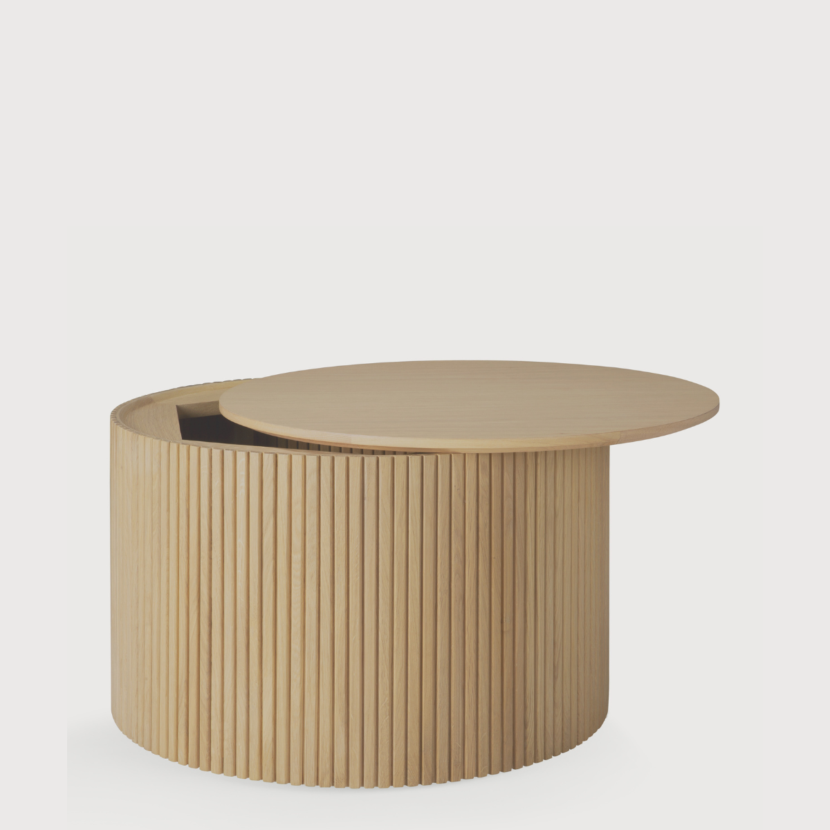 Designed by Jacques Deneef, the Roller Max is a clever multifunctional item that combines a coffee table with storage. Encapsulated in its stacked wood-stick effect, the tabletop can be easily removed to hide the newspapers, toys, cushions and throws from daily life. The perfect solution for smaller living.