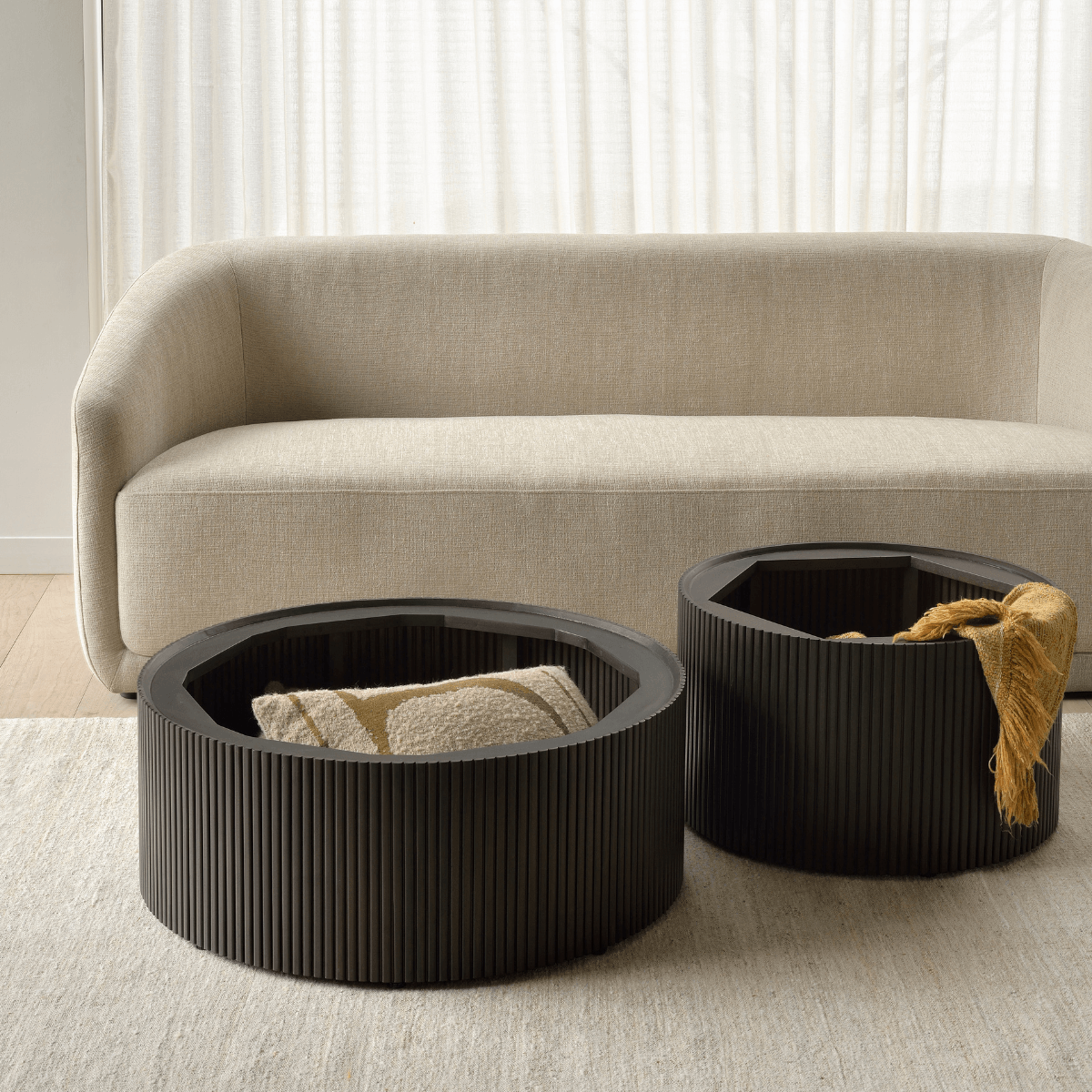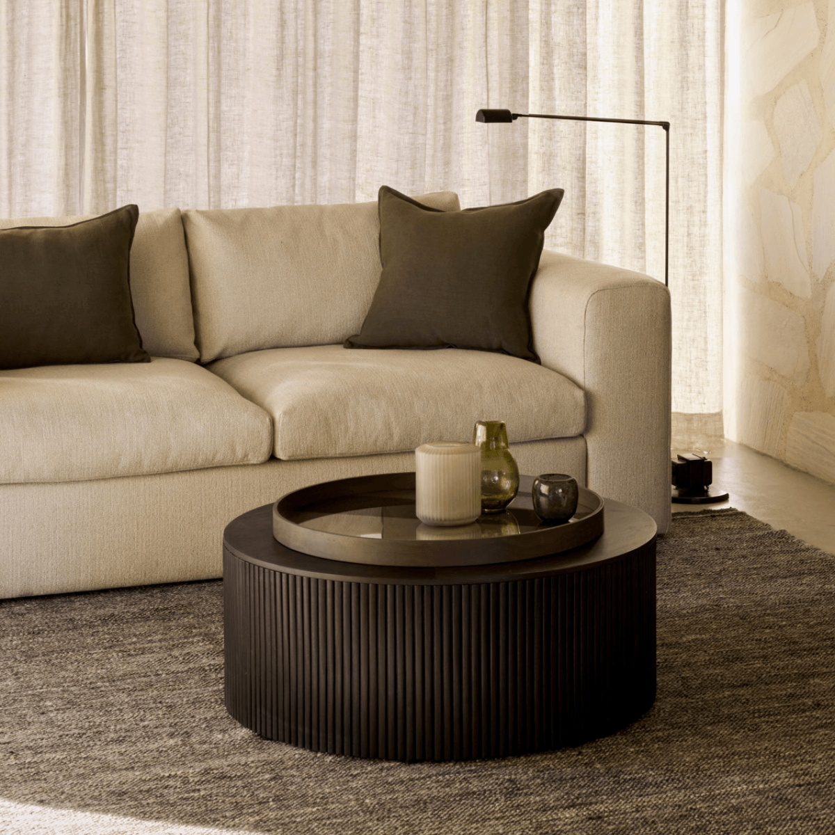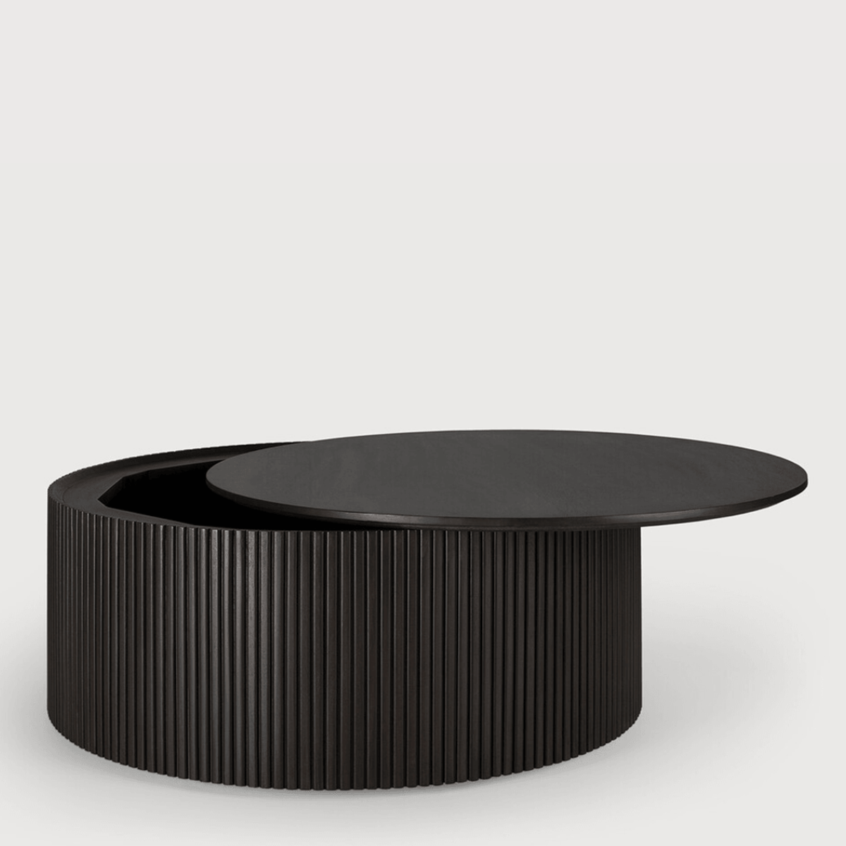 Designed by Jacques Deneef, the Roller Max is a clever multifunctional item that combines a coffee table with storage. Encapsulated in its stacked wood-stick effect, the tabletop can be easily removed to hide the newspapers, toys, cushions and throws from daily life. The perfect solution for smaller living.
