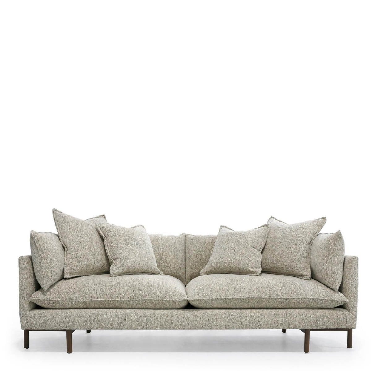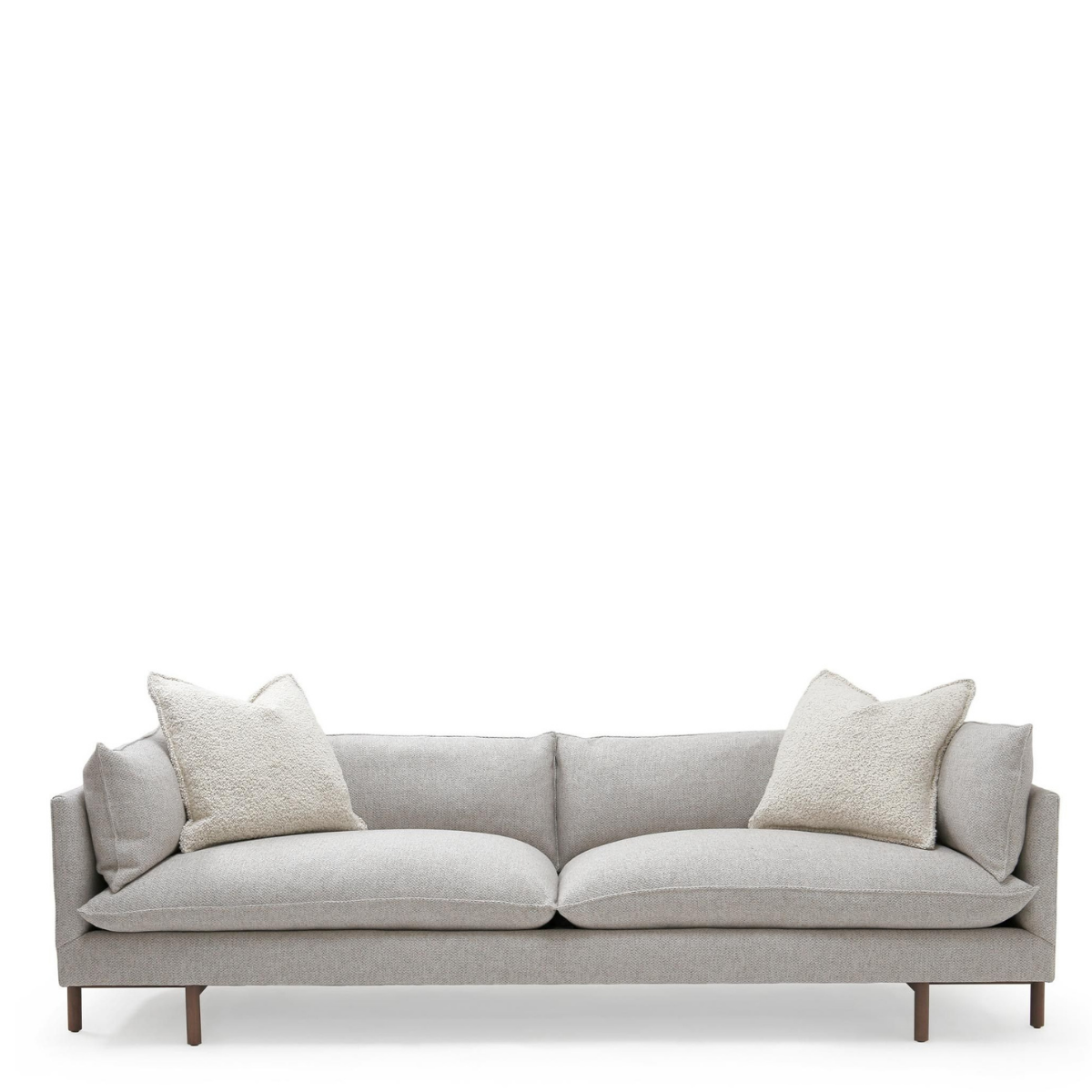 The Sullivan sofa collection features a lean, upholstered frame with loose, knife-edged seat and back cushions, and beautiful dowel accent legs on the back and sides.
