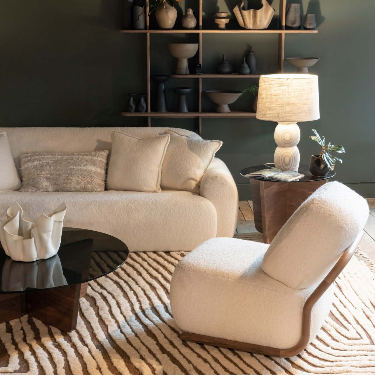 Drawing inspiration from primitive and organic shapes, Maurice’s silhouette offers playful sophistication in its balanced proportions and gentle curvature.