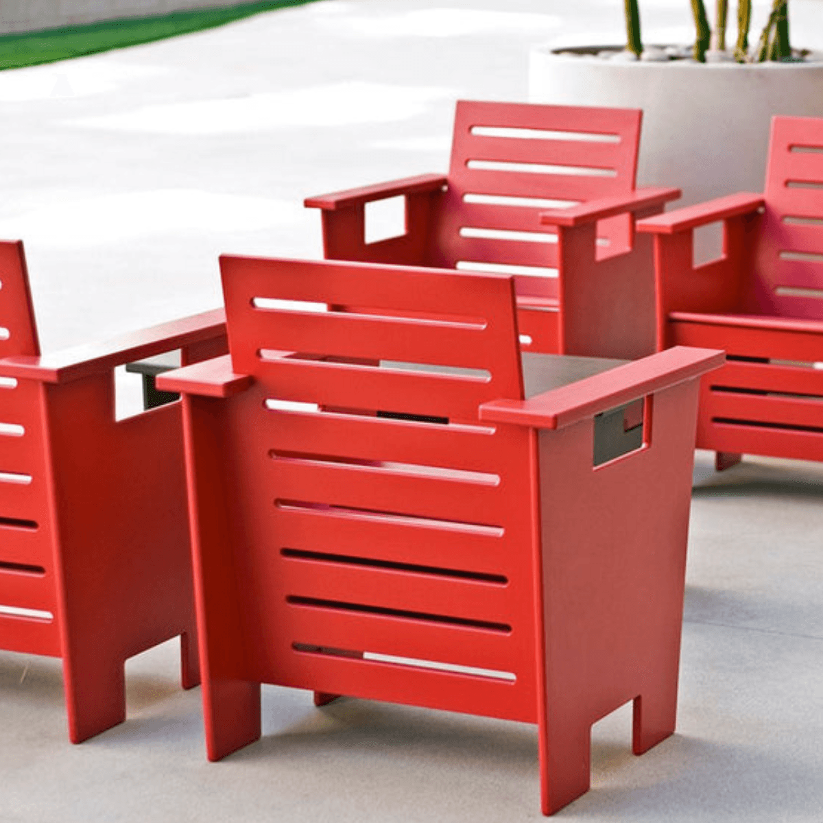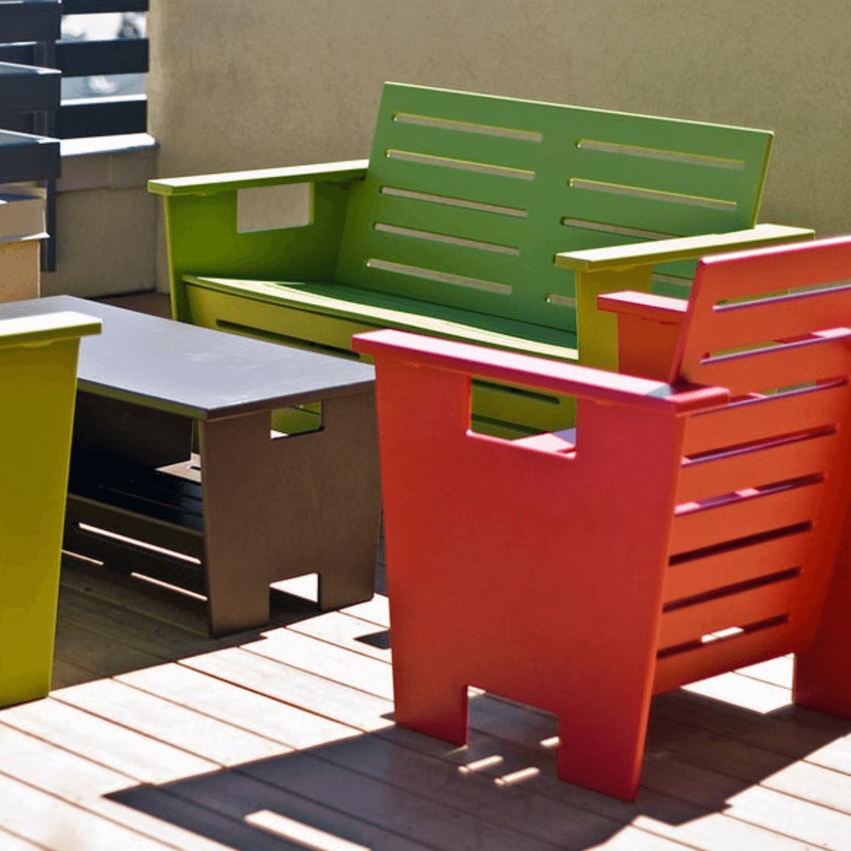 Loll's materials are made up of recycled high-density polyethylene which is mainly sourced from single-use milk jug containers, and since 2005, they’ve converted over 135 million milk jugs into outdoor furniture. They also recycle more than 88% of their own manufacturing waste by creating extensive recycling programs around anything that can be reused. Every feature of a Loll piece is also able to be fully recycled again, and through a material reutilization program, customers are encouraged to return products at the end of their life cycle to ensure they don’t end up in landfills.