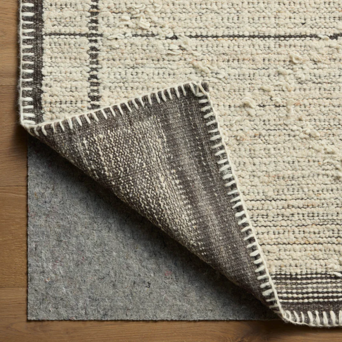 Beautifully crafted by hand, the Bowie Collection by Amber Lewis x Loloi is a textured area rug with an earthy, organic aesthetic. The pile has a flatweave base with chunkier, slightly raised geometric motifs and whipstitched edges. It is an elegant yet easy-to-work-with rug for living rooms, bedrooms, and other high-traffic areas of the home. This collection is made of wool, cotton, and other fibers in India and GoodWeave-certified, ensuring our commitment to ethical production and the support of weavers communities.