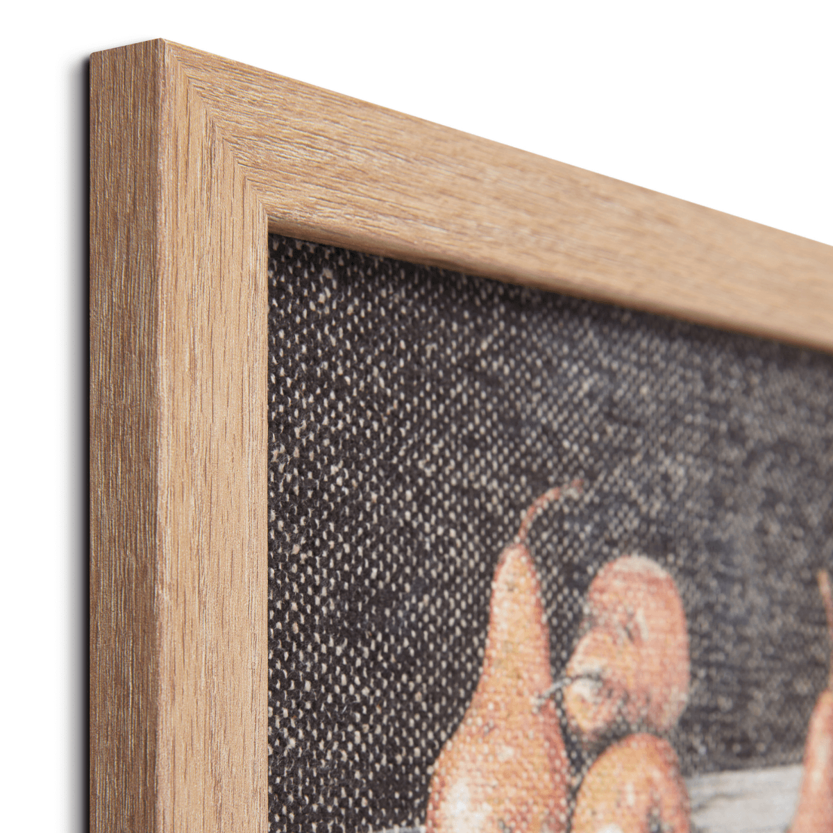 Inspired by antique oil paintings, this textile wall art features a still life of ochre-toned pears in a white bowl. The artwork measures 11” x 13” and is custom-framed in Dallas, Texas. Designed by Amber Lewis x Loloi.