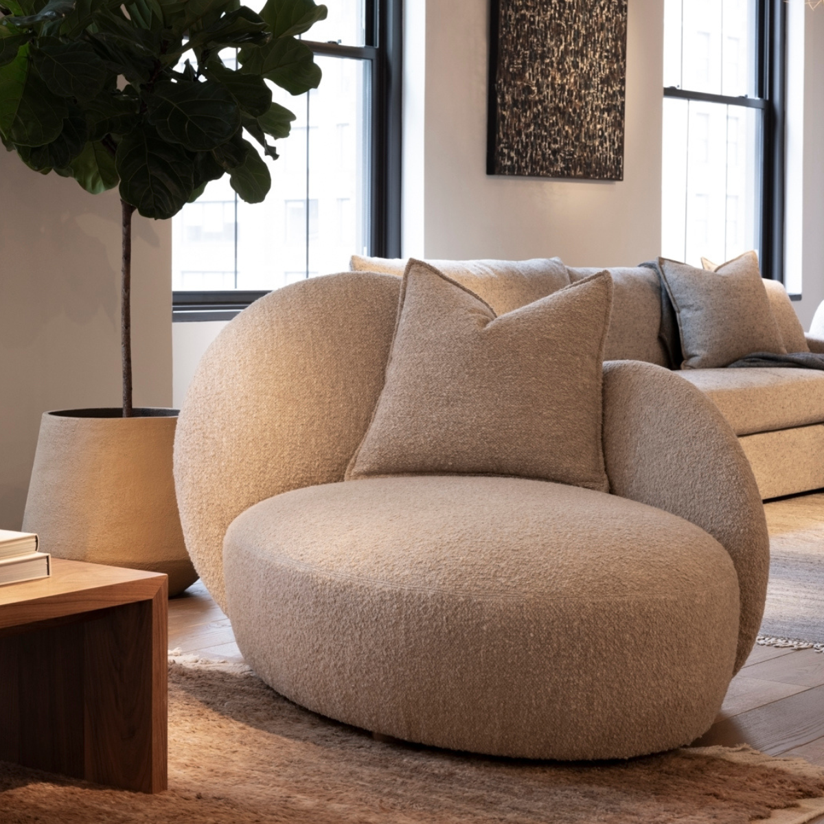 The Chloe One Arm Chaise carries the same playful curves and slightly angled arm as the sofa, offering a unique silhouette. With its plush, tight seat and back, this chaise combines bold, modern design with luxurious comfort, making it a perfect statement piece for lounging in style.