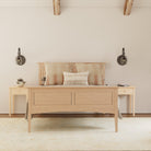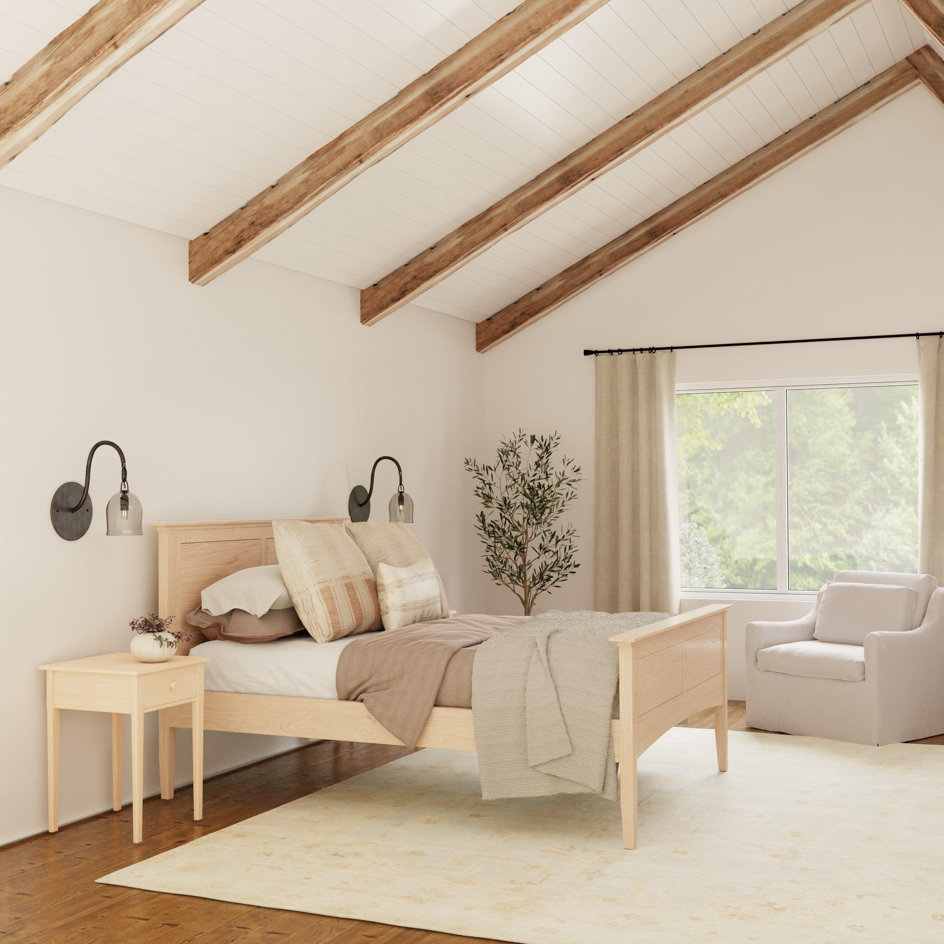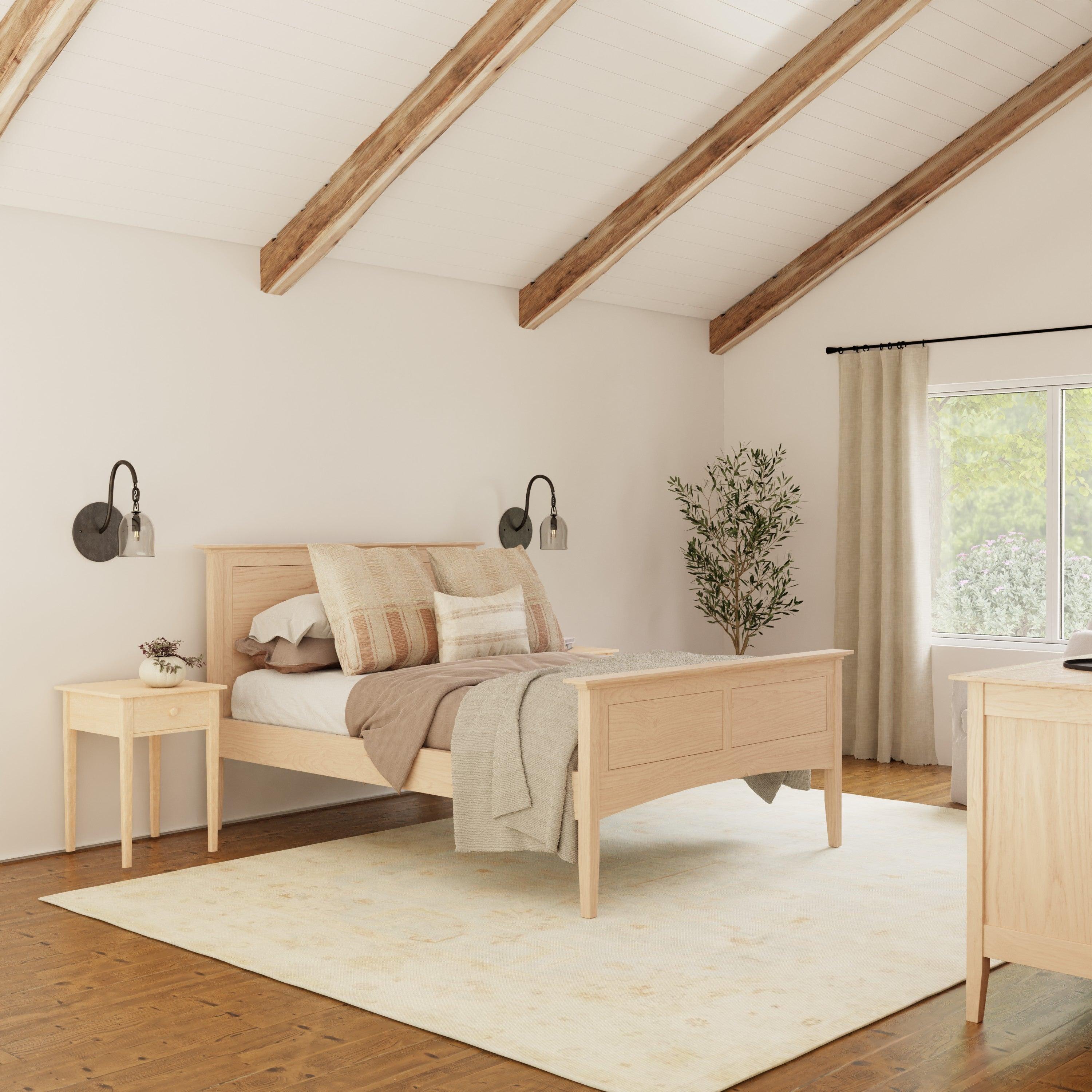 The Canterbury Panel Bed features a beautiful hardwood panel headboard and footboard. Available in Natural Cherry, Maple, or Walnut hardwood with either a platform frame or a frame that will accommodate a box spring and mattress.