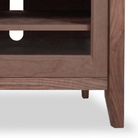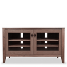 The Horizon Small TV Console features two sections with one fixed shelf and two adjustable shelves for component storage. Customize your media console by replacing a shelf with a media storage drawer and choose either glass or wood panel doors, or open shelving with no doors. Available in Natural Cherry, Maple, or Walnut hardwood.