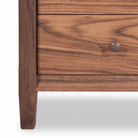 The Shaker Three Drawer Nightstand features three soft-close drawers, four-sided tapered corner posts, chamfered edges, cove moldings, and the traditional round button shaker knob. Available in Natural Cherry, Maple, or Walnut hardwood.