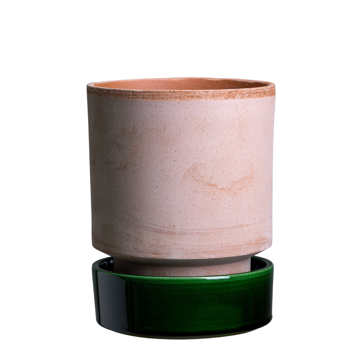 Hoff Raw Rosa/Emerald Green Planter & Saucer
