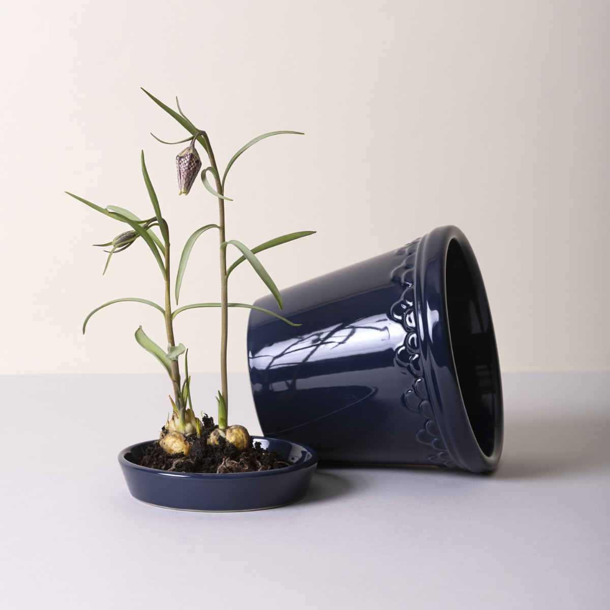 Glazed Sapphire Blue Københavner Planter & Saucer