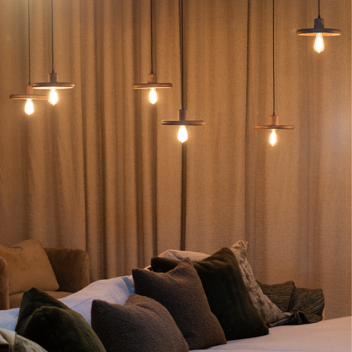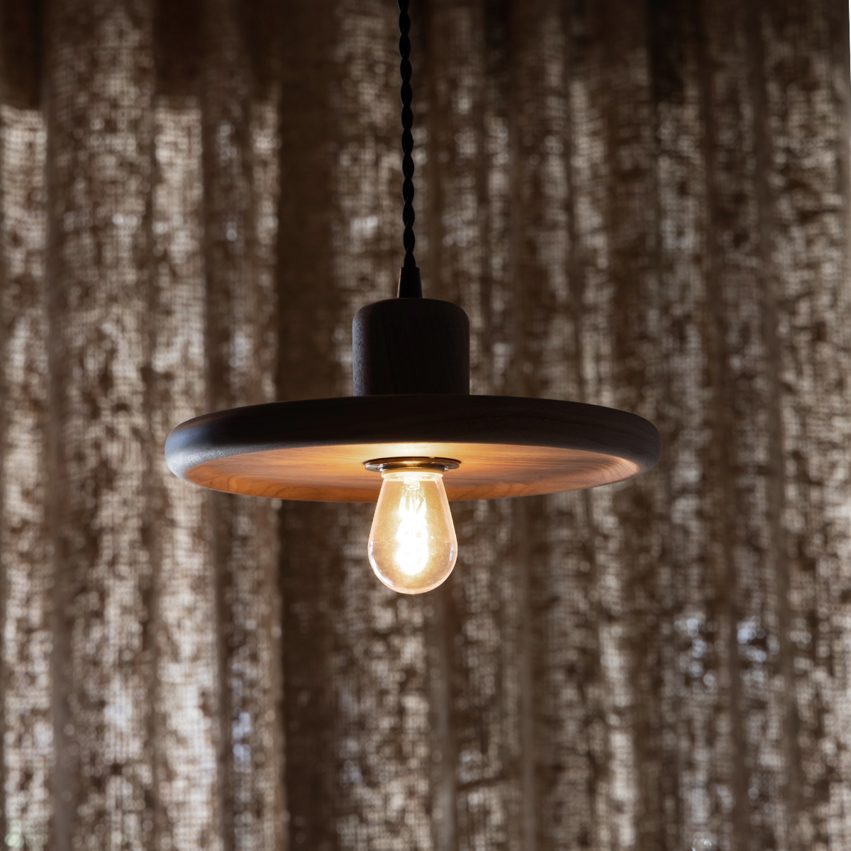 Blissfully suspended by a delicately twisted cord, the Bormio Pendant, made from upcycled walnut, will light up your space.