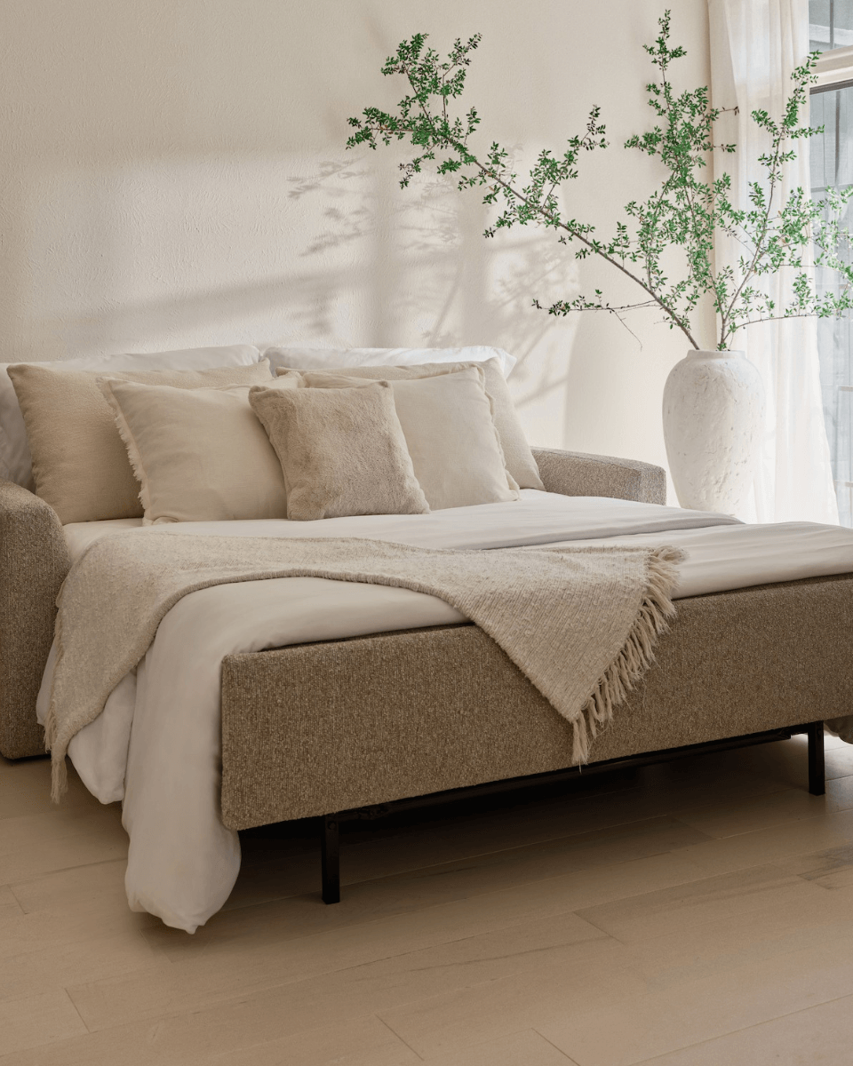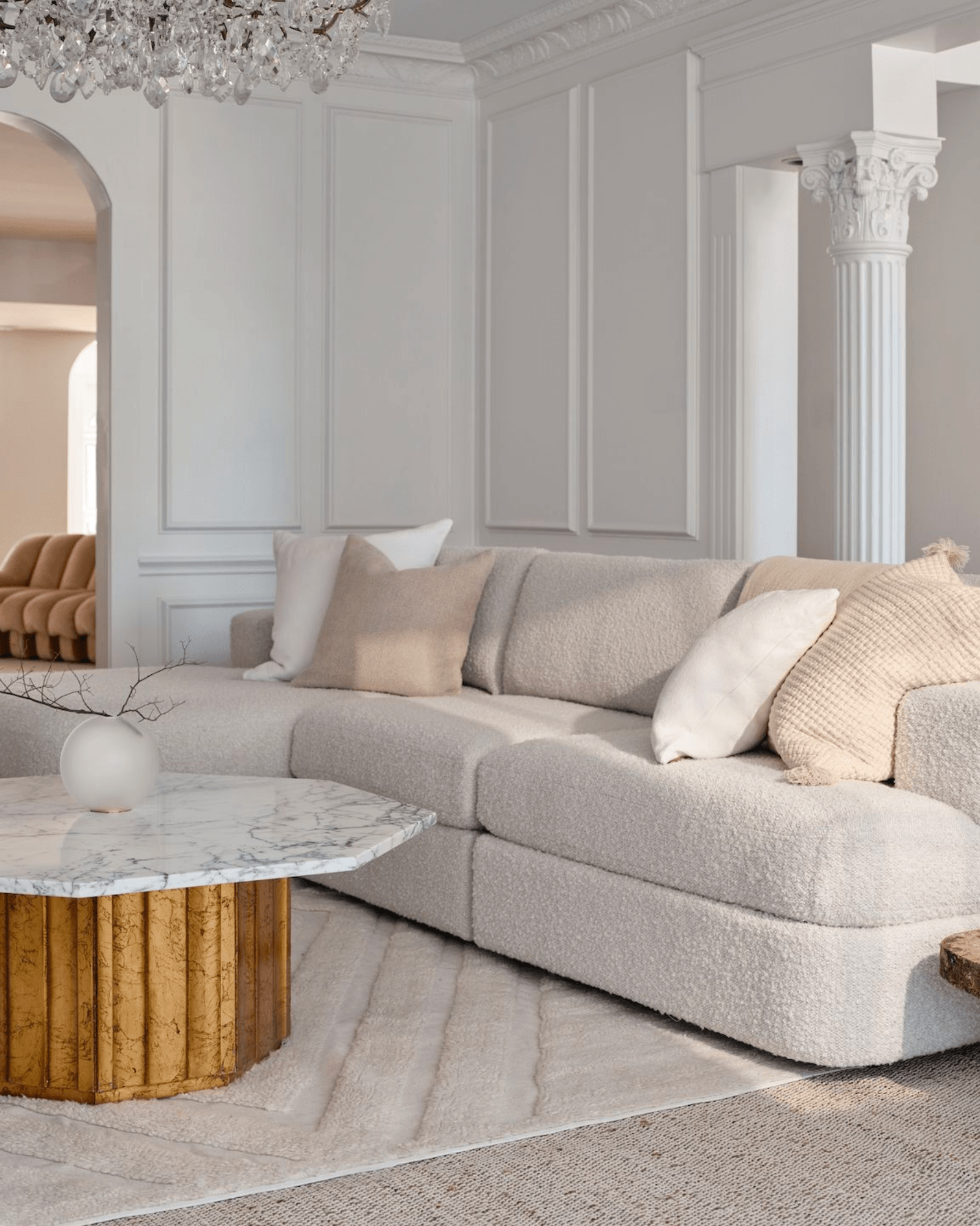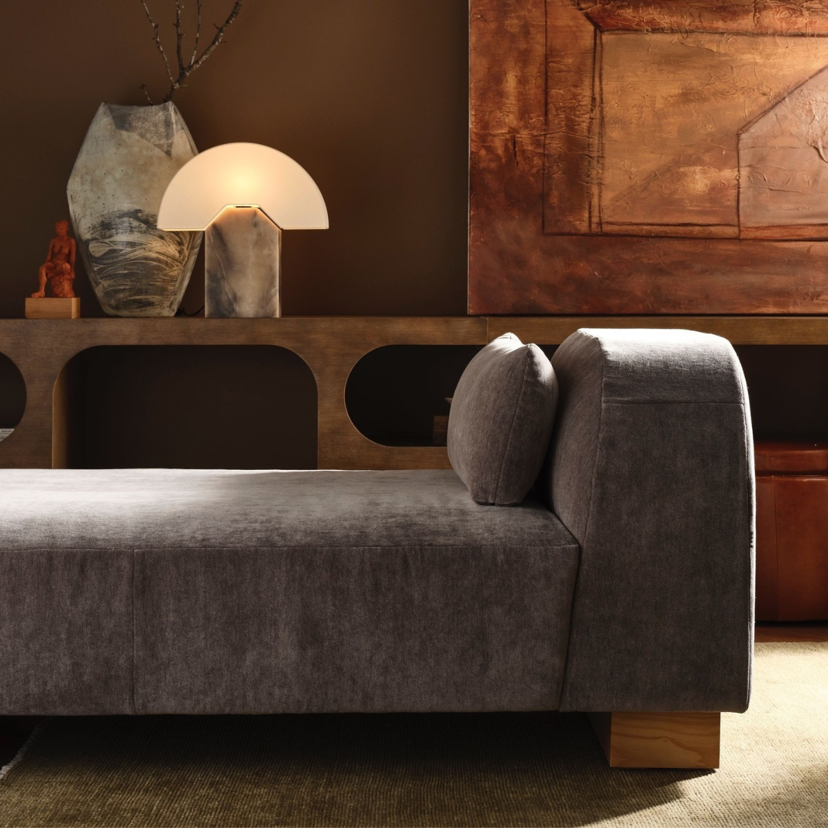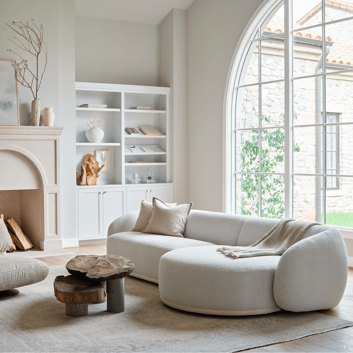 Inviting and warm, the gentle slope of Doran's tusk arms create a cool and cozy feel.