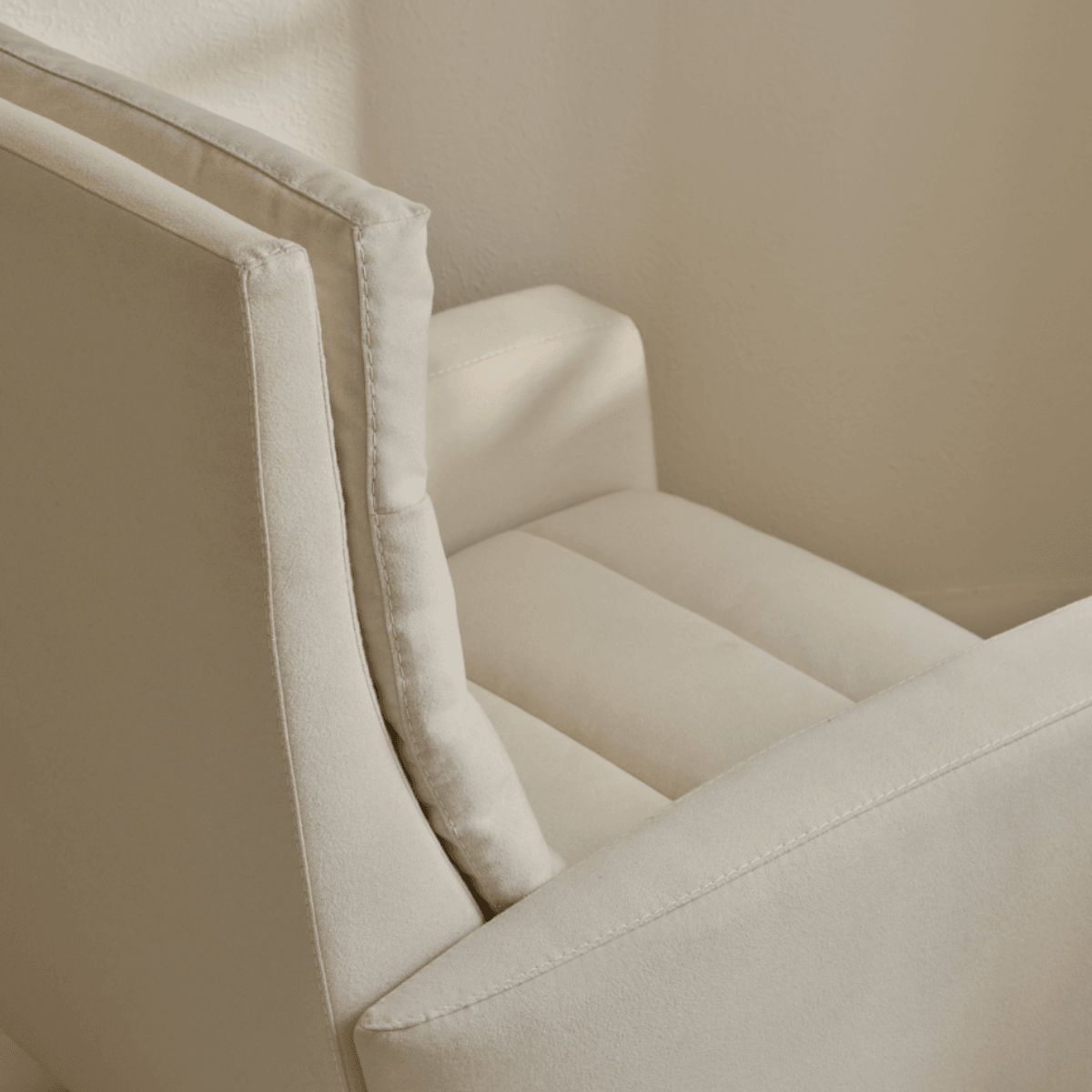 Lush cushions and a swivel base make Doran just as appealing to relax in—as it is to look at.