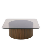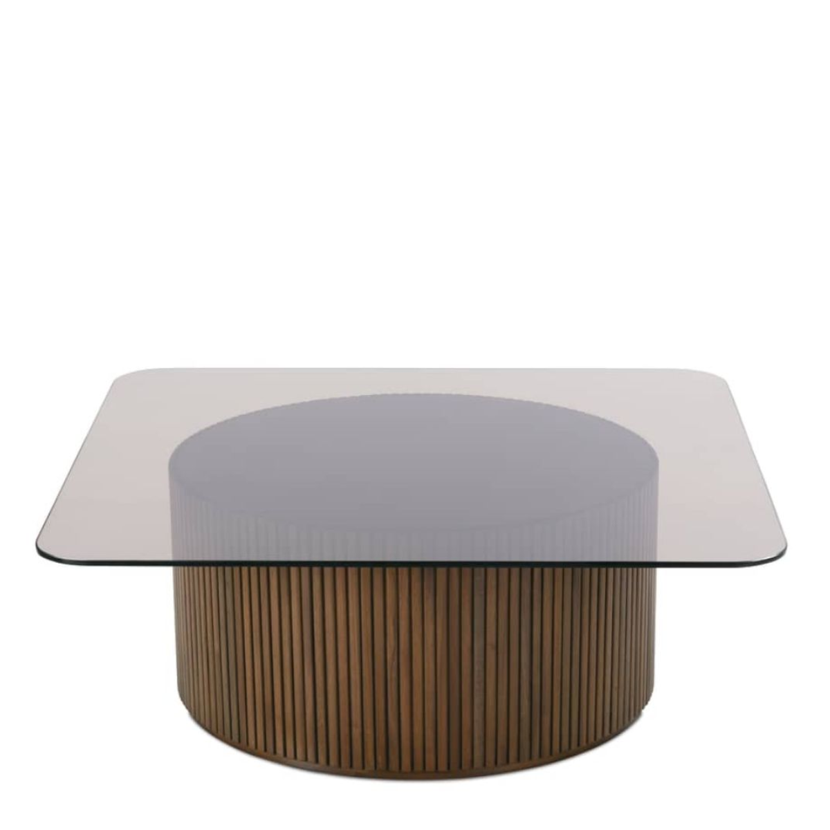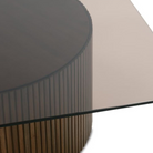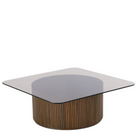 Elevate your living space with the Kindred Square Small Cocktail Table, where architectural sophistication meets timeless design. The striking reeded base creates a mesmerizing rhythm of vertical lines, culminating in refined trim details that ground this statement piece with purposeful elegance. Available in rich Godiva or organic Sesame finishes on premium solid mahogany, the cylindrical pedestal base supports a sleek smoked glass top that seems to float above, creating an airy yet substantial presence. This versatile table seamlessly bridges classic and contemporary aesthetics, making it equally at home in a curated formal living room or a modern open-concept space. Whether styled with artful coffee table books and sculptural objects or left pristinely minimal, this cocktail table transforms any setting into a sophisticated sanctuary while maintaining an inviting, approachable presence.