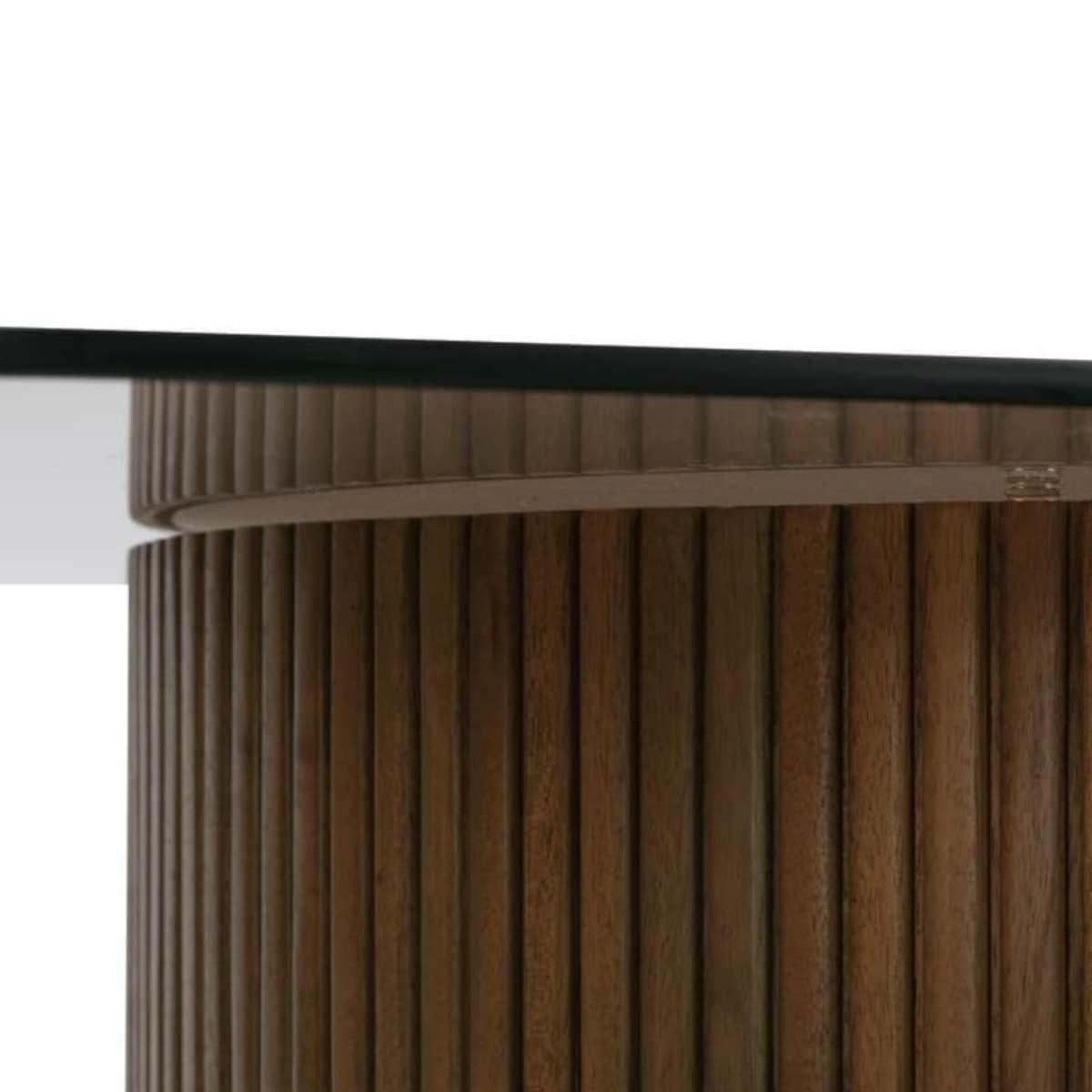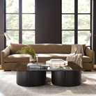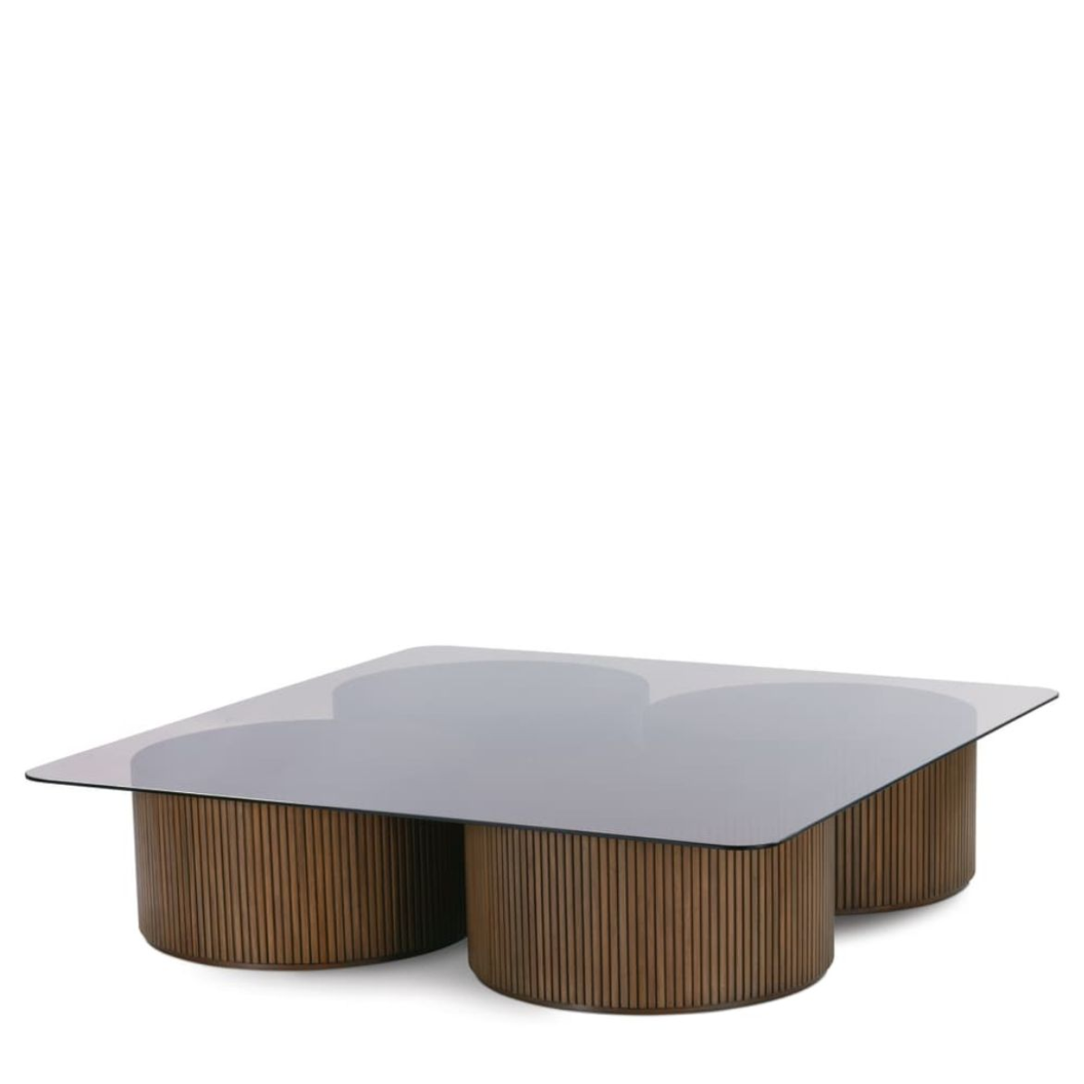 The Kindred Square Cocktail Table masterfully reimagines classic reeded detailing for today's sophisticated interiors, featuring two substantial cylindrical bases crowned with a sleek smoked glass top. The meticulously crafted reeded texture creates a mesmerizing rhythm of vertical lines, while the curved bottom trim adds an elegant finishing touch that speaks to exceptional attention to detail. Available in both rich Godiva and organic Sesame finishes on premium solid mahogany, this statement piece adapts seamlessly to both traditional and contemporary spaces, offering versatile styling possibilities. The substantial scale and architectural presence of this cocktail table commands attention while maintaining an airy feel through its smoked glass top, creating a perfect balance of gravitas and lightness that can anchor a living space without overwhelming it. Whether positioned in a formal sitting room or a modern open-concept space, this piece demonstrates how thoughtful design can transform functional furniture into an artistic focal point that elevates the entire room's atmosphere.