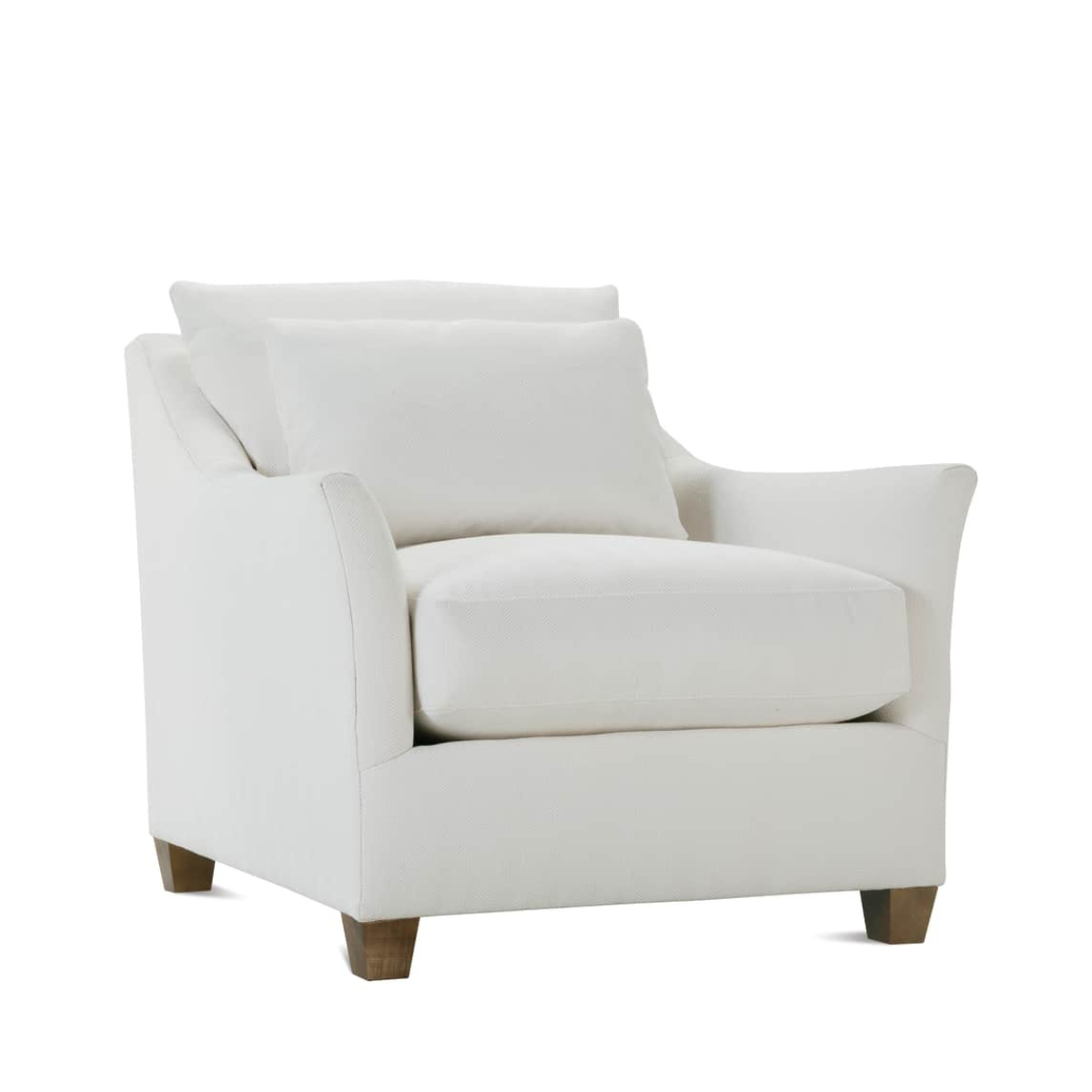 The Moreau Chair is made with a Cloud down cushion. This cushion is one of Rowe's most luxurious and comfortable cushion options. The Cloud down cushion requires daily maintenance - fluffing, flipping, and smoothing of the seat and back cushions to keep its appearance looking fresh. Comfort wrinkles are to be expected and are a feature of the chairs style – a traditional chair frame with modern, relaxed seating.