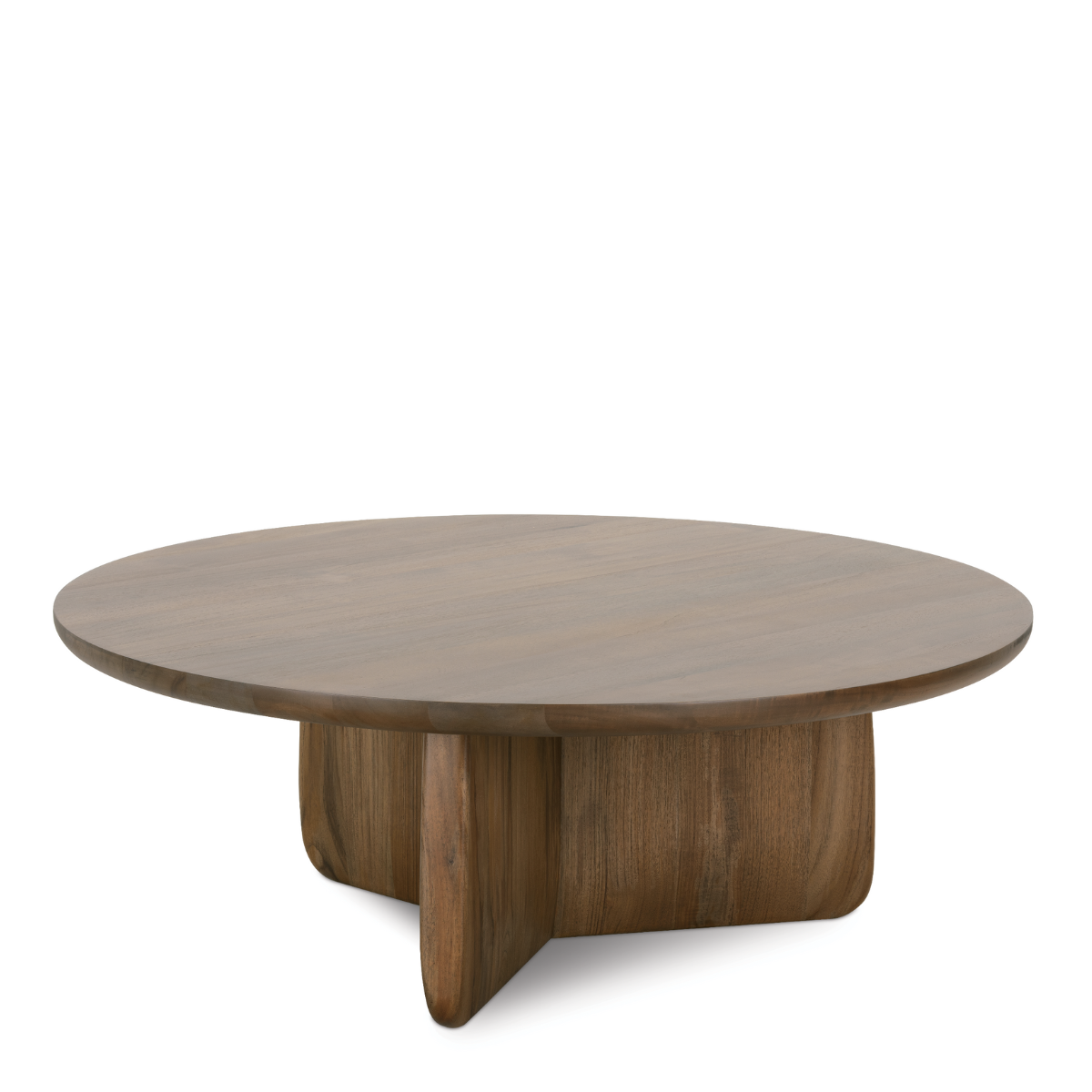 The Nova Round Coffee Table exemplifies the perfect fusion of organic simplicity and architectural strength, showcasing the natural beauty of lightly stained solid teak through its masterfully crafted silhouette. The table's substantial round top appears to float effortlessly above its sculptural base, which features gracefully curved supports that create an engaging interplay of negative and positive space. This artfully balanced design serves as both a functional centerpiece and a conversation-starting work of art, offering generous surface area for displaying treasured objects while maintaining an airy, sophisticated presence. The table's honest expression of material and form makes it an versatile addition to any living space, where it can anchor a seating arrangement while harmonizing beautifully with both upholstered pieces and hard surfaces, creating a timeless focal point that will continue to captivate for generations to come.