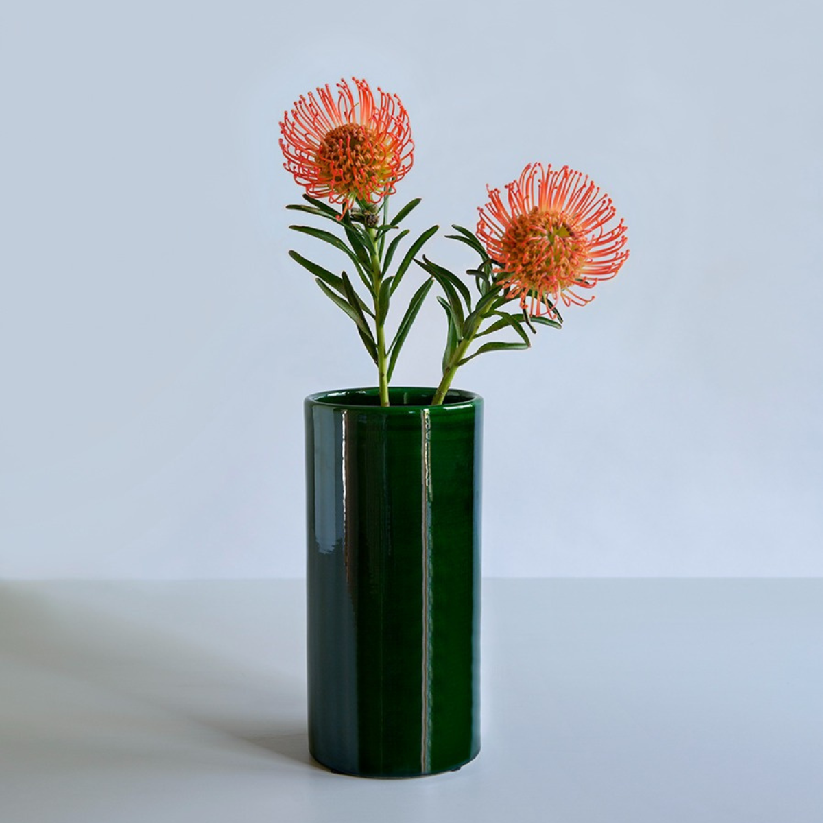 Romeo is the number one glazed cylindrical flowerpot and vase for plant lovers who cannot get enough of minimalist, geometric shapes. The straight lines are easy on the eyes and permit us to stare into the intense and saturated color of the stringently designed Romeo series. Hand-dipped in Bergs Potters' boundless deep Emerald Green glazing.