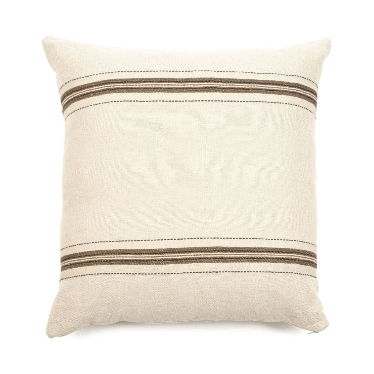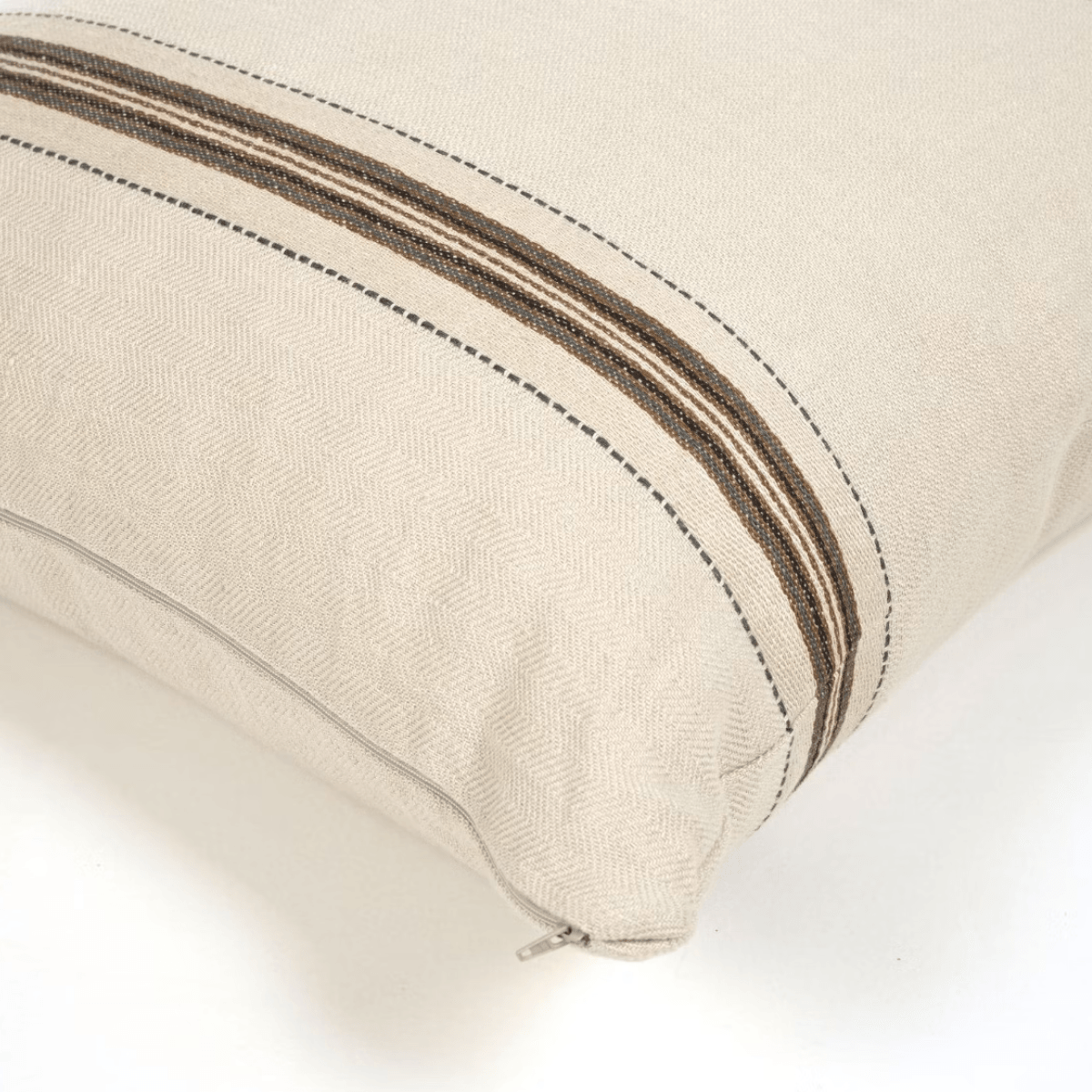The pillow has the same stripe top and bottom and is finished with a zipper closure.