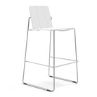 Give your built-in bar or bar table a new look with these airy modern chairs. Durable and designed for all weather, these stainless steel and HDPE stools easily stack to transform the bar area into a dance floor at a moment’s notice.