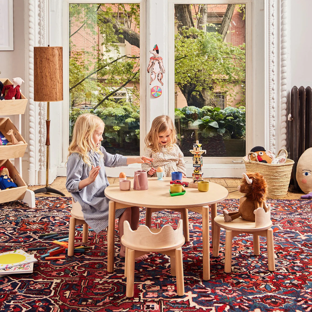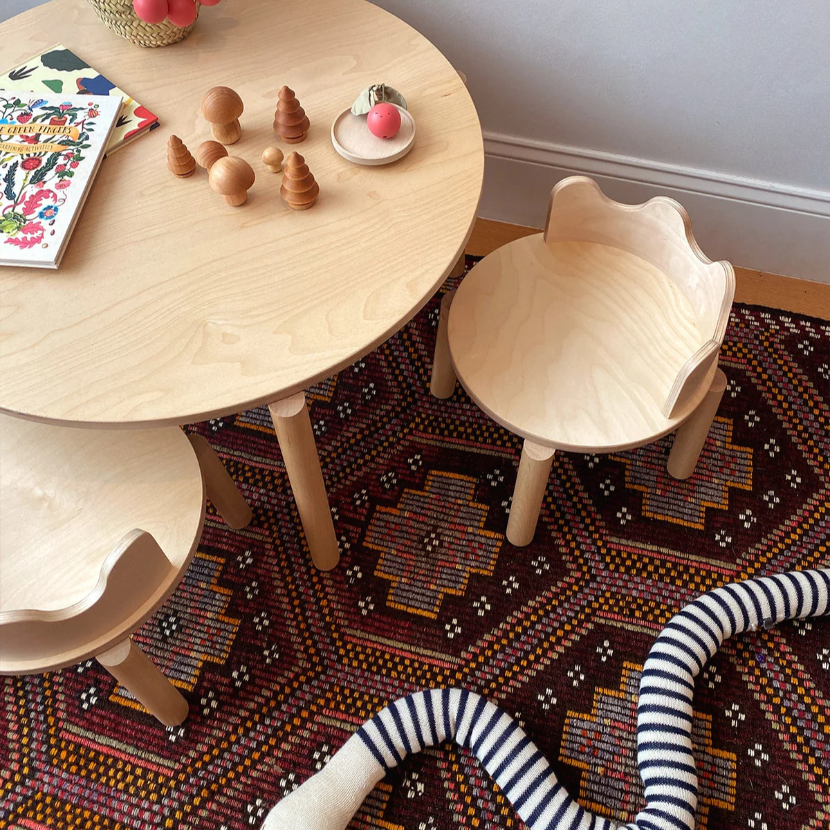 Make art time, snack time and everything in between more playful with our round Moss Table. Featuring a generous surface and stable hardwood construction, it's an ideal companion to our wave-backed Moss Chairs but welcomes any toddler-sized seating. It's made ethically in Europe just like all Oeuf furniture.
